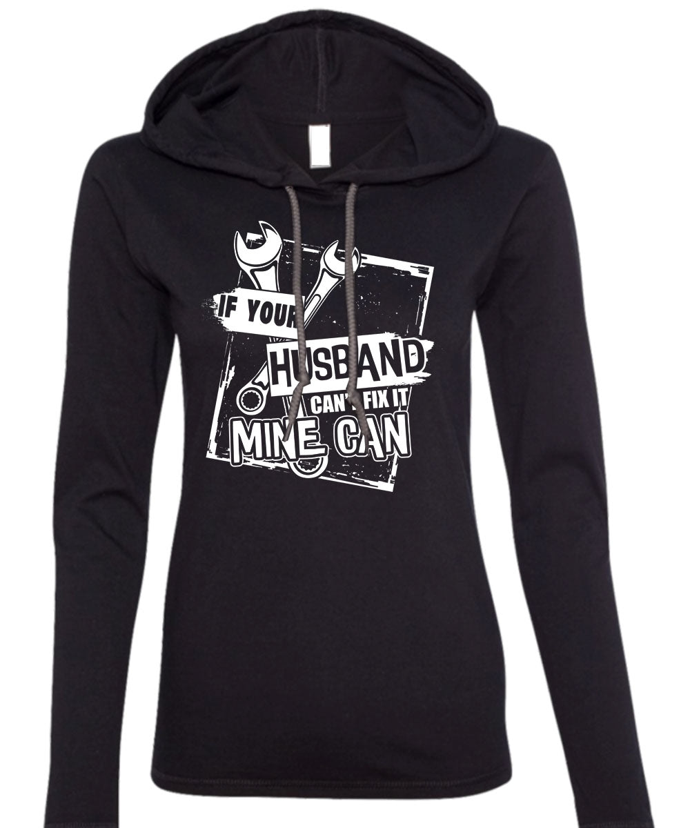 If Your Husband Can't Fix It Mine Can T Shirt, Being A Mechanic T Shirt (Anvil Ladies Ringspun Hooded)
