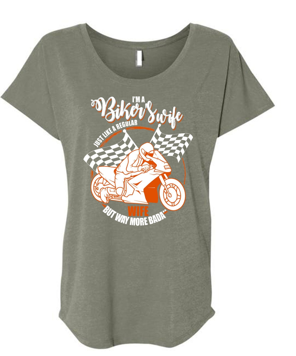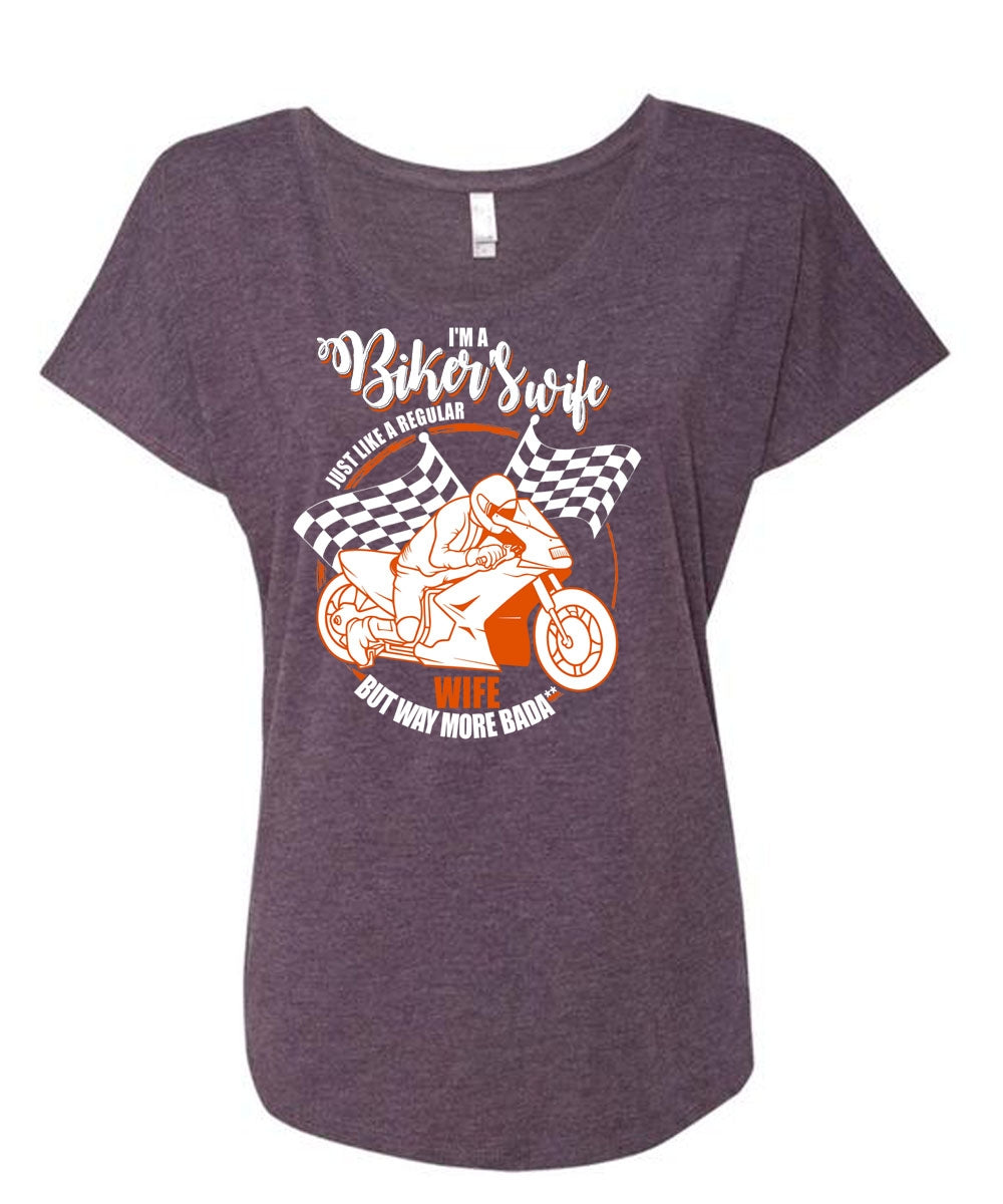 I'm A Biker's Wife T Shirt, Being A Biker T Shirt, Cool Shirt (Ladies' Triblend Dolman Sleeve)