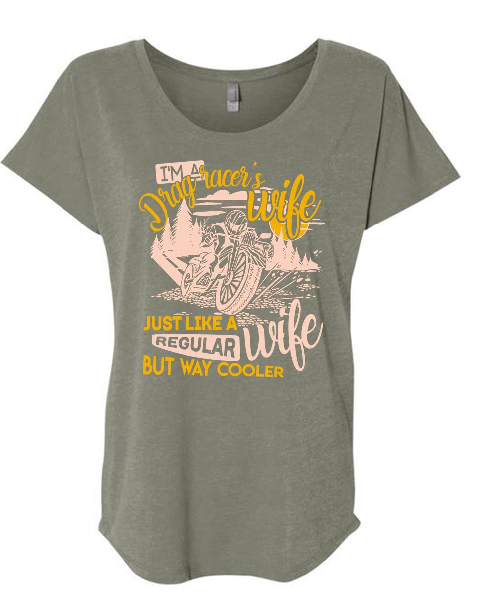 I'm A Drag Racer's Wife T Shirt, Just Like A Regular Wife T Shirt, Cool Shirt (Ladies' Triblend Dolman Sleeve)