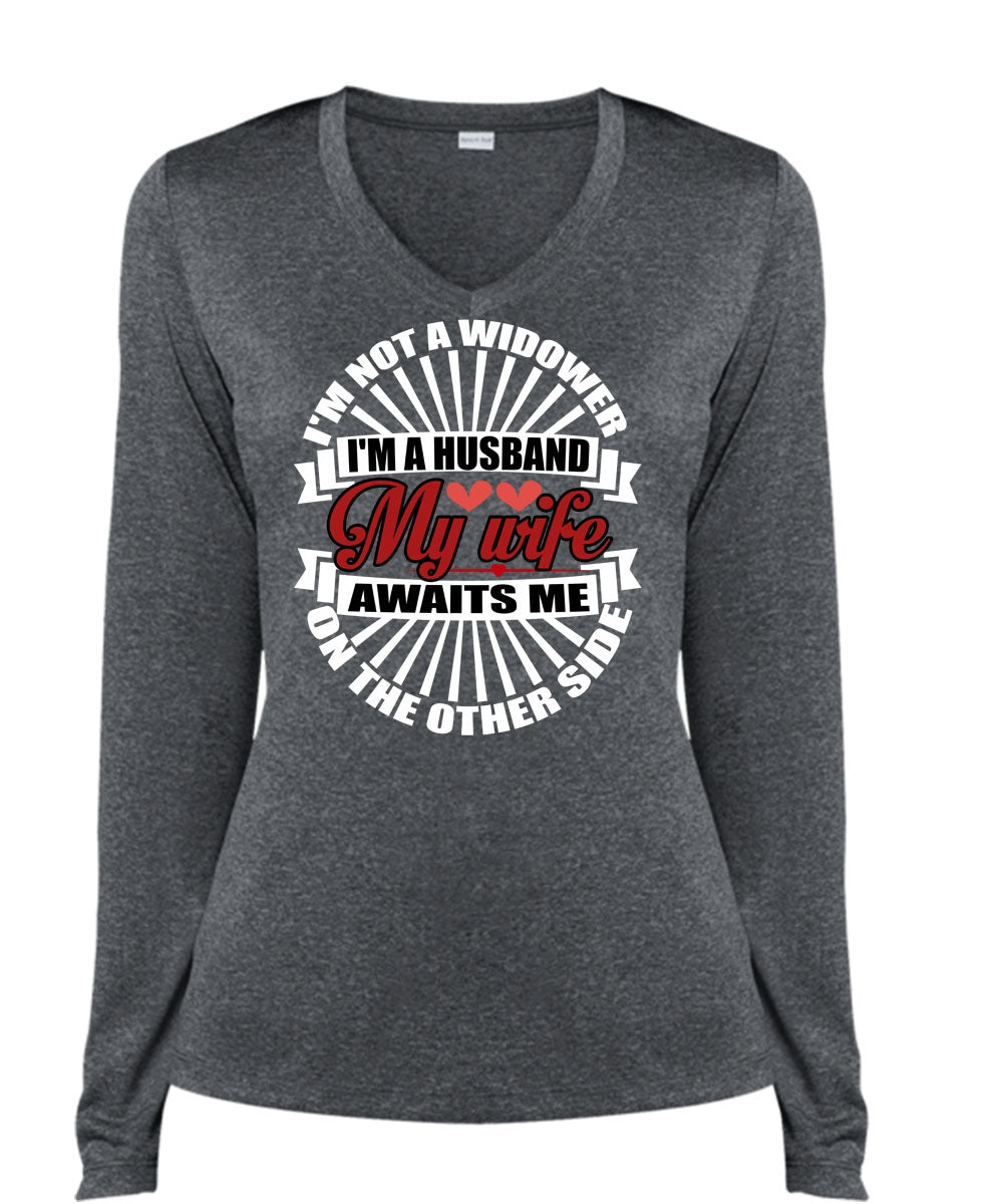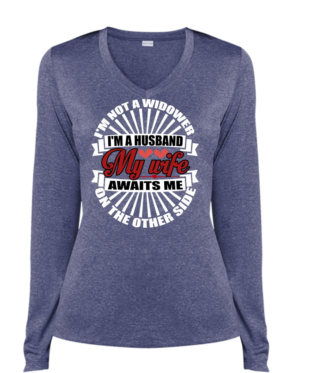 I'm A Husband T Shirt, My Wife Awaits Me T Shirt, Cool Shirt (Ladies LS Heather V-Neck)
