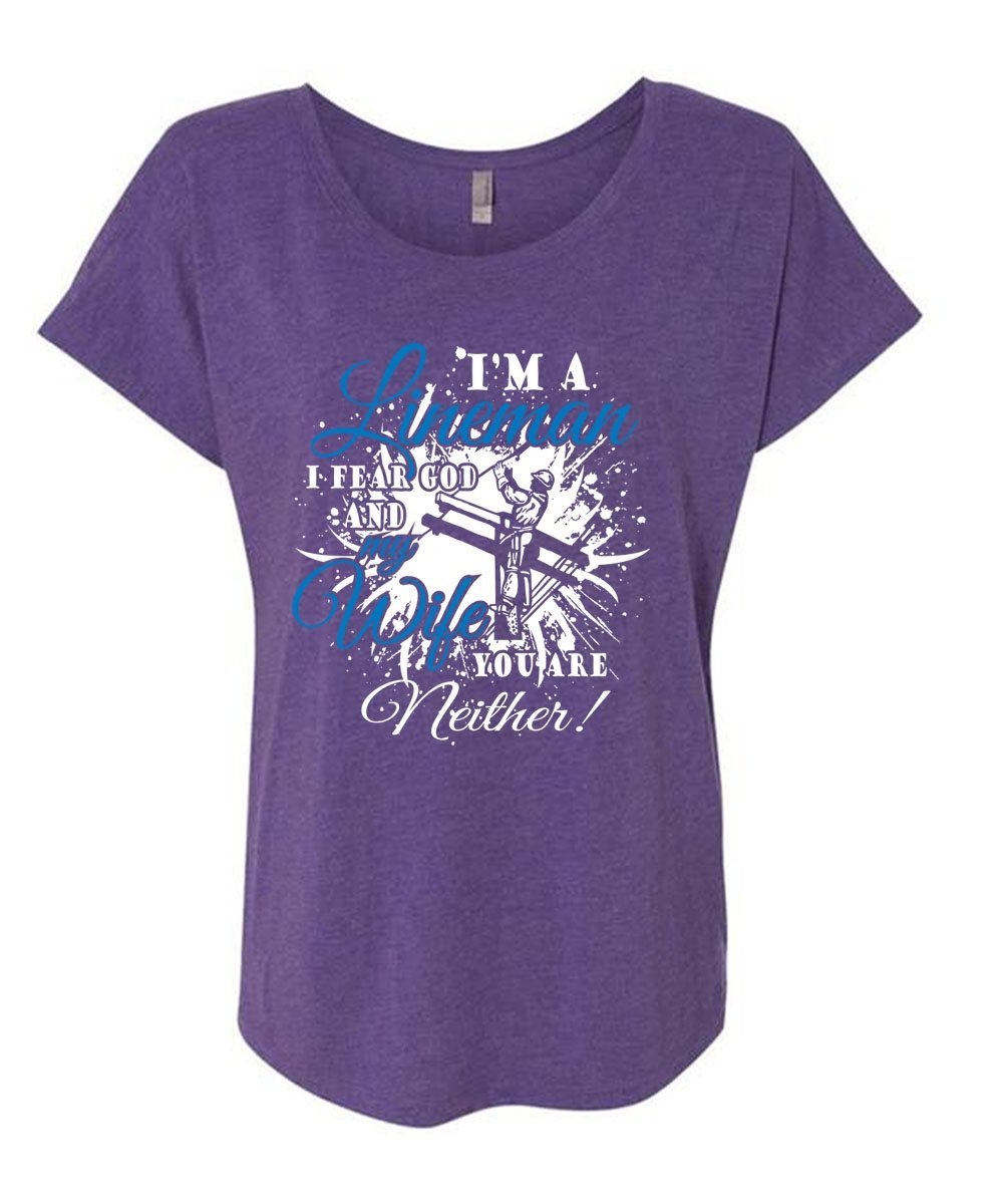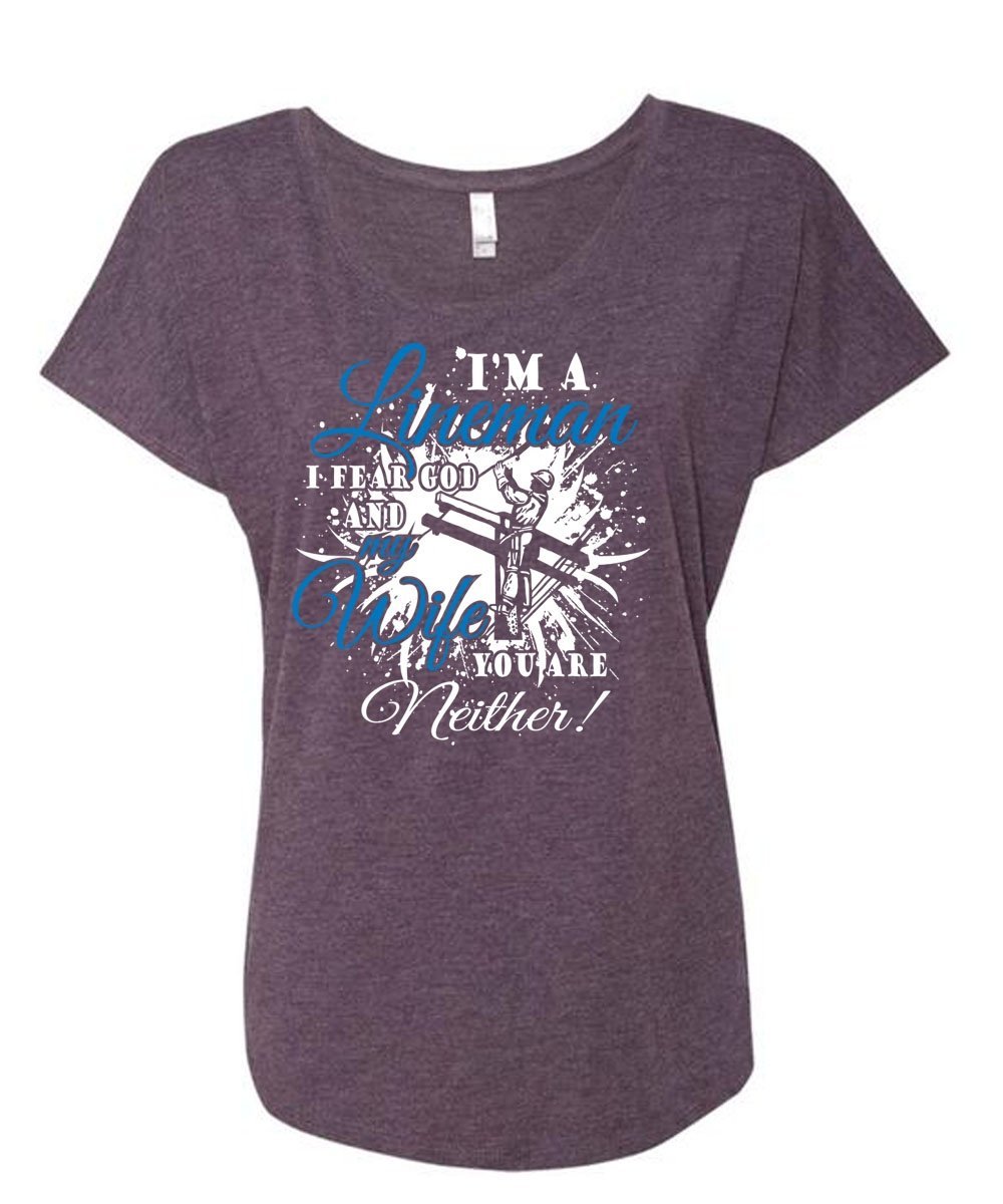I'm A Lineman I Fear God And My Wife You Are Neither T Shirt, Career T Shirt (Ladies' Triblend Dolman Sleeve)