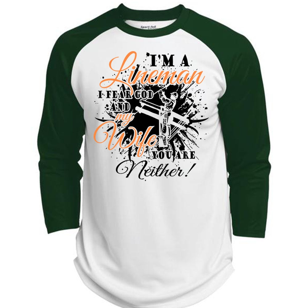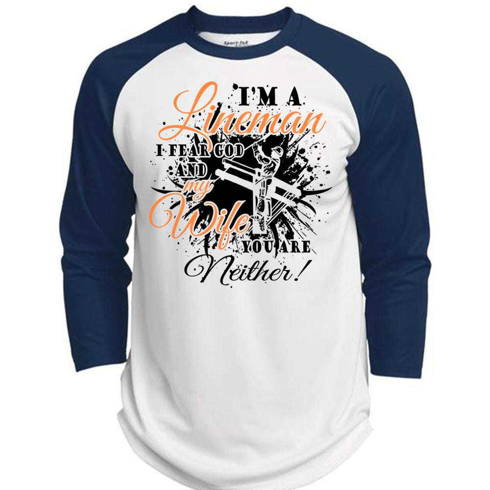 I'm A Lineman I Fear God And My Wife You Are Neither T Shirt, Job T Shirt (Polyester Game Baseball Jersey)