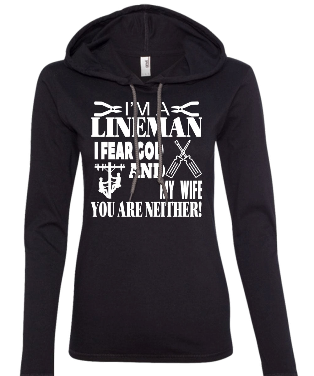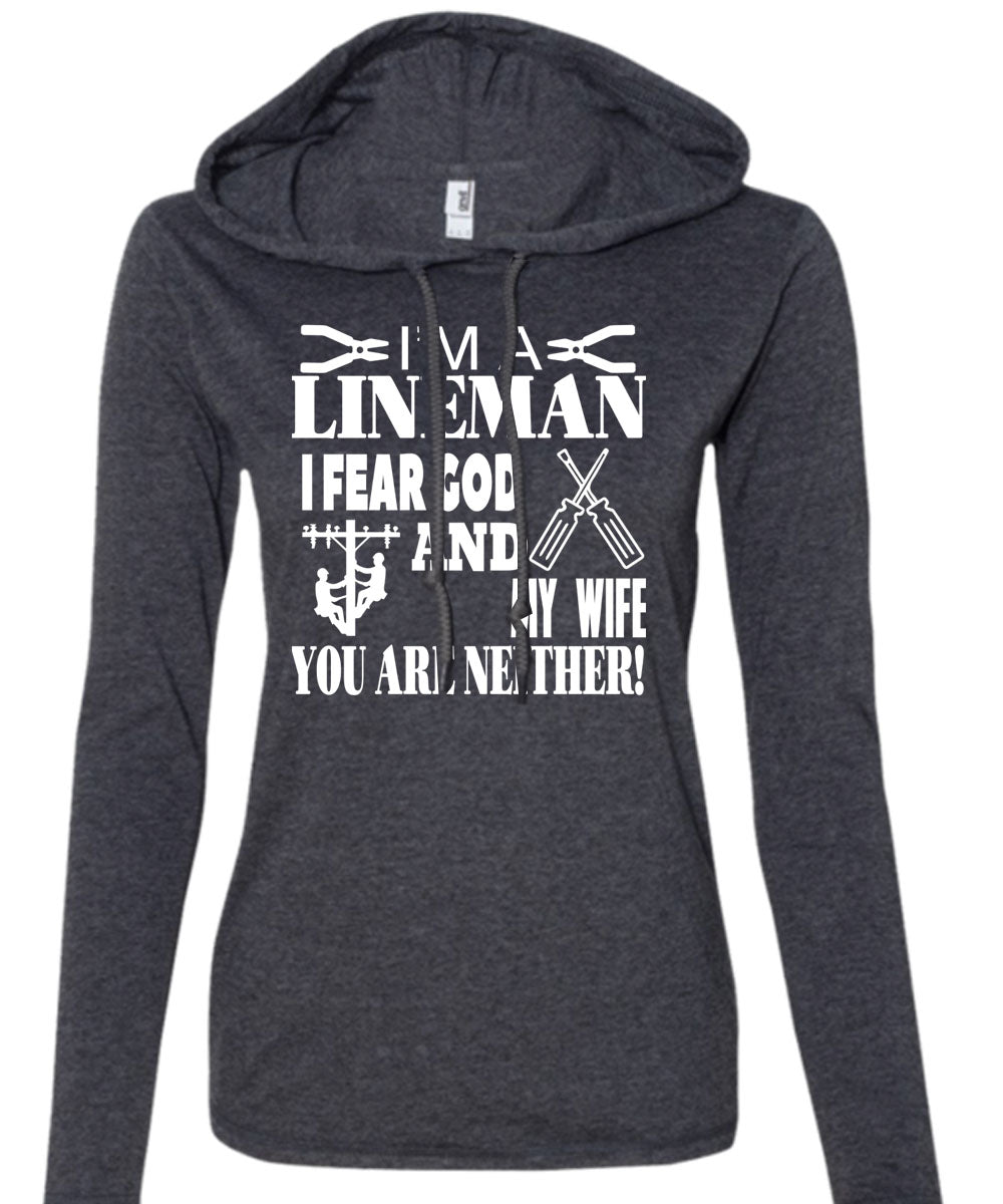 I'm A Lineman T Shirt, I Fear God And My Wife T Shirt (Anvil Ladies Ringspun Hooded)