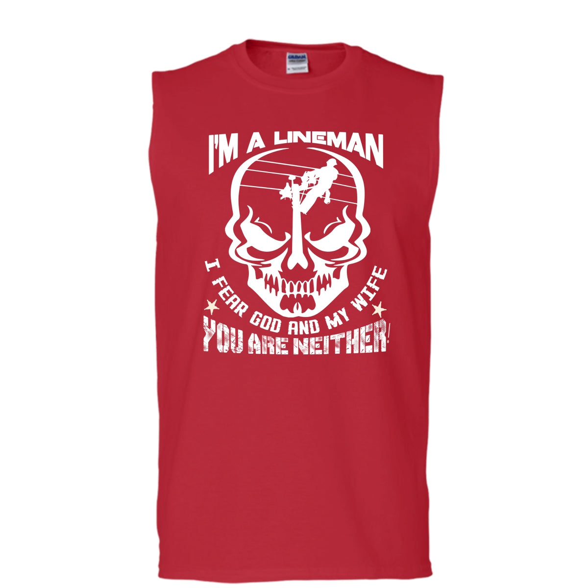 I'm A Lineman T Shirt, I Fear God And My Wife T Shirt, Cool T Shirt (Men's Cotton Sleeveless)