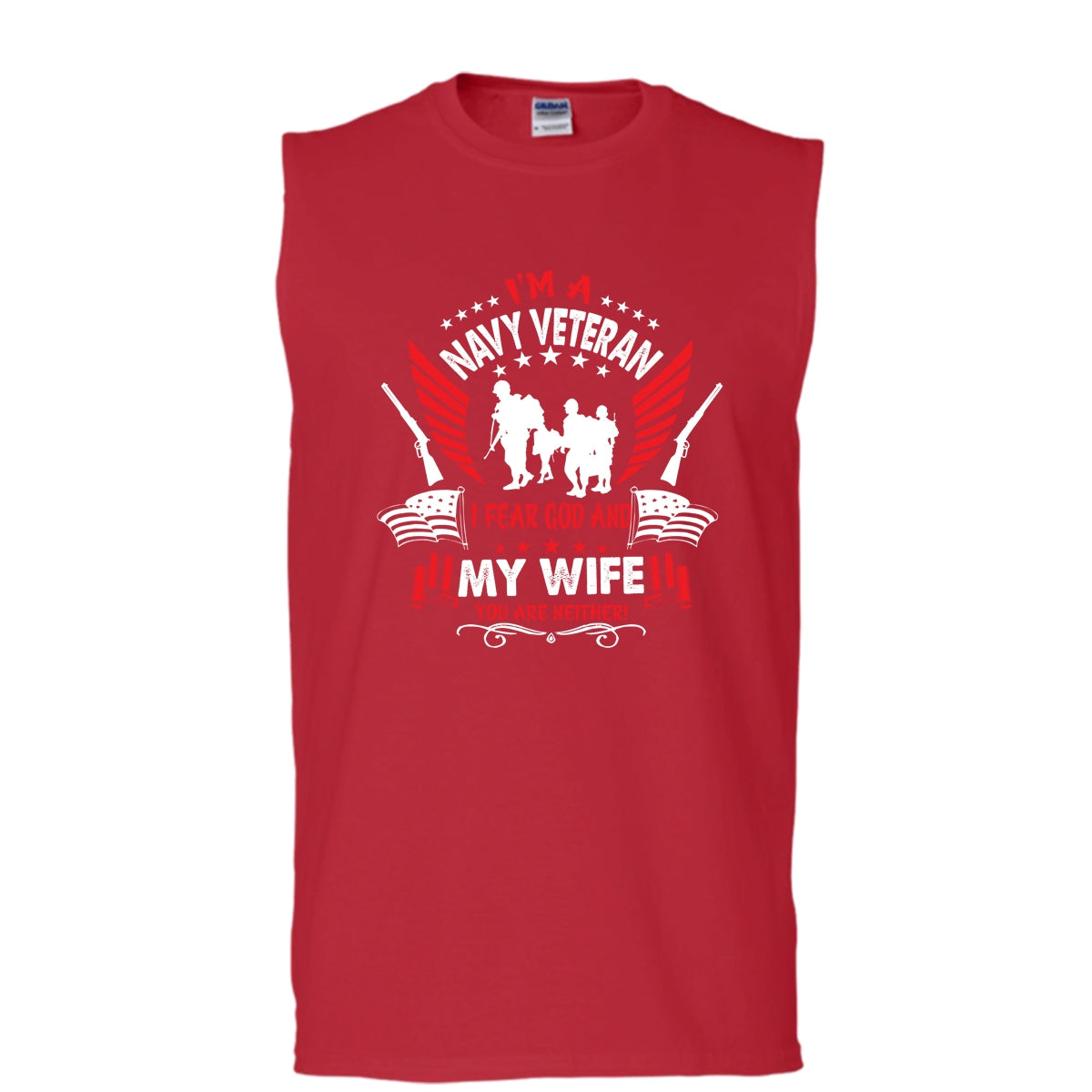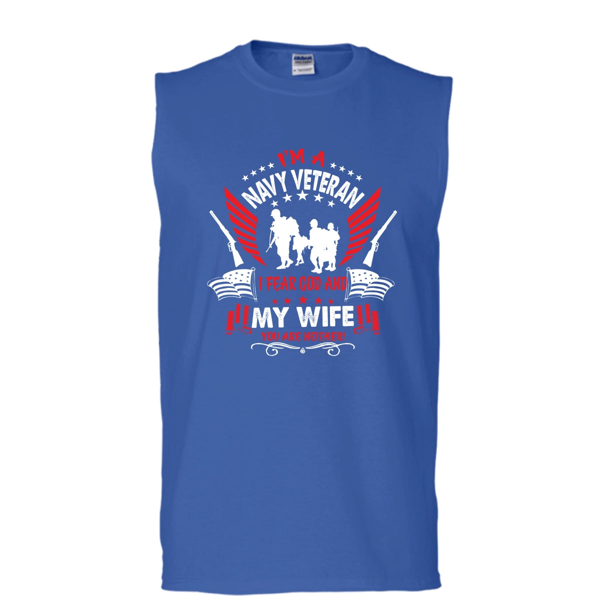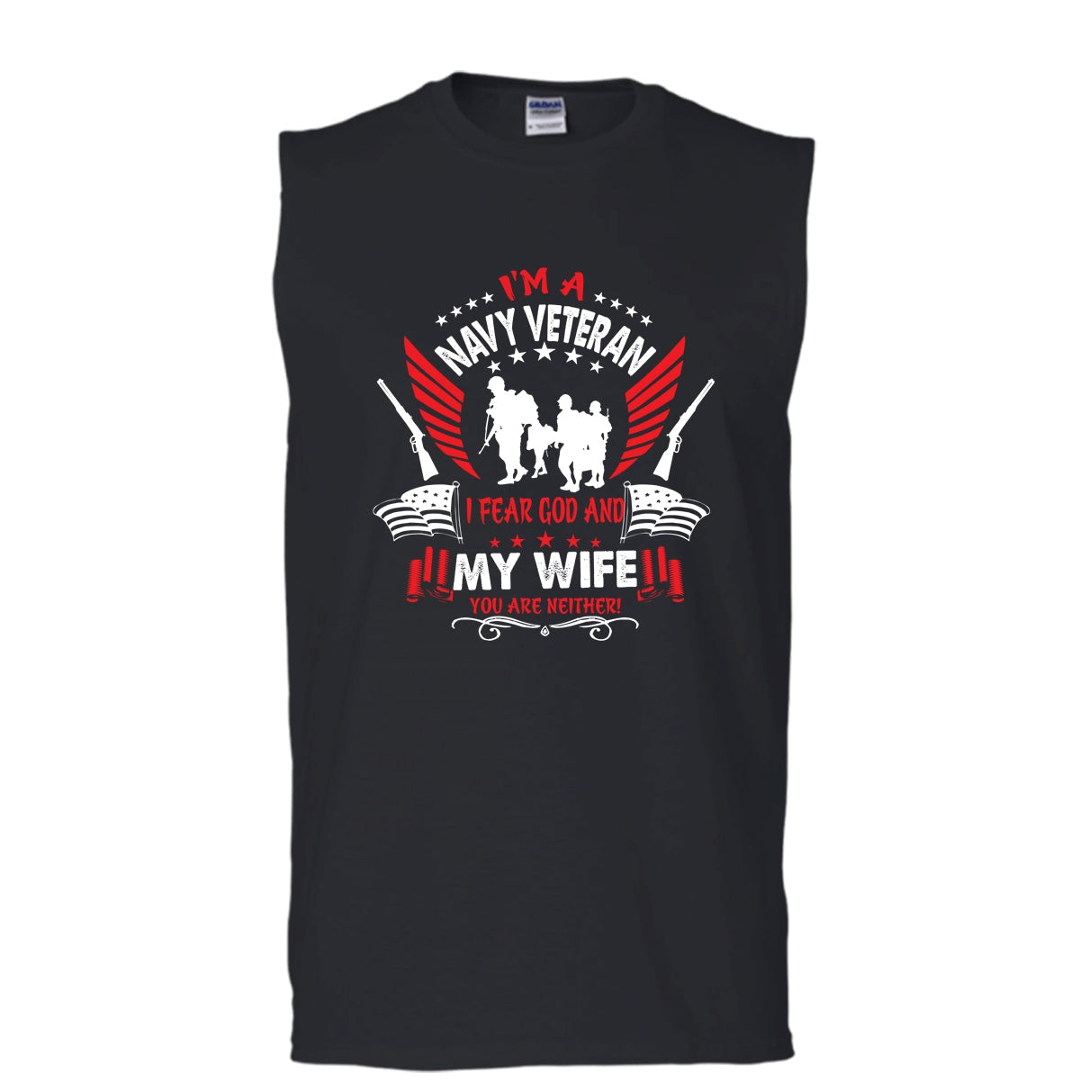 I'm A Navy Veteran Shirt, I Fear God And My Wife You Are Neither Shirt (Men's Cotton Sleeveless)