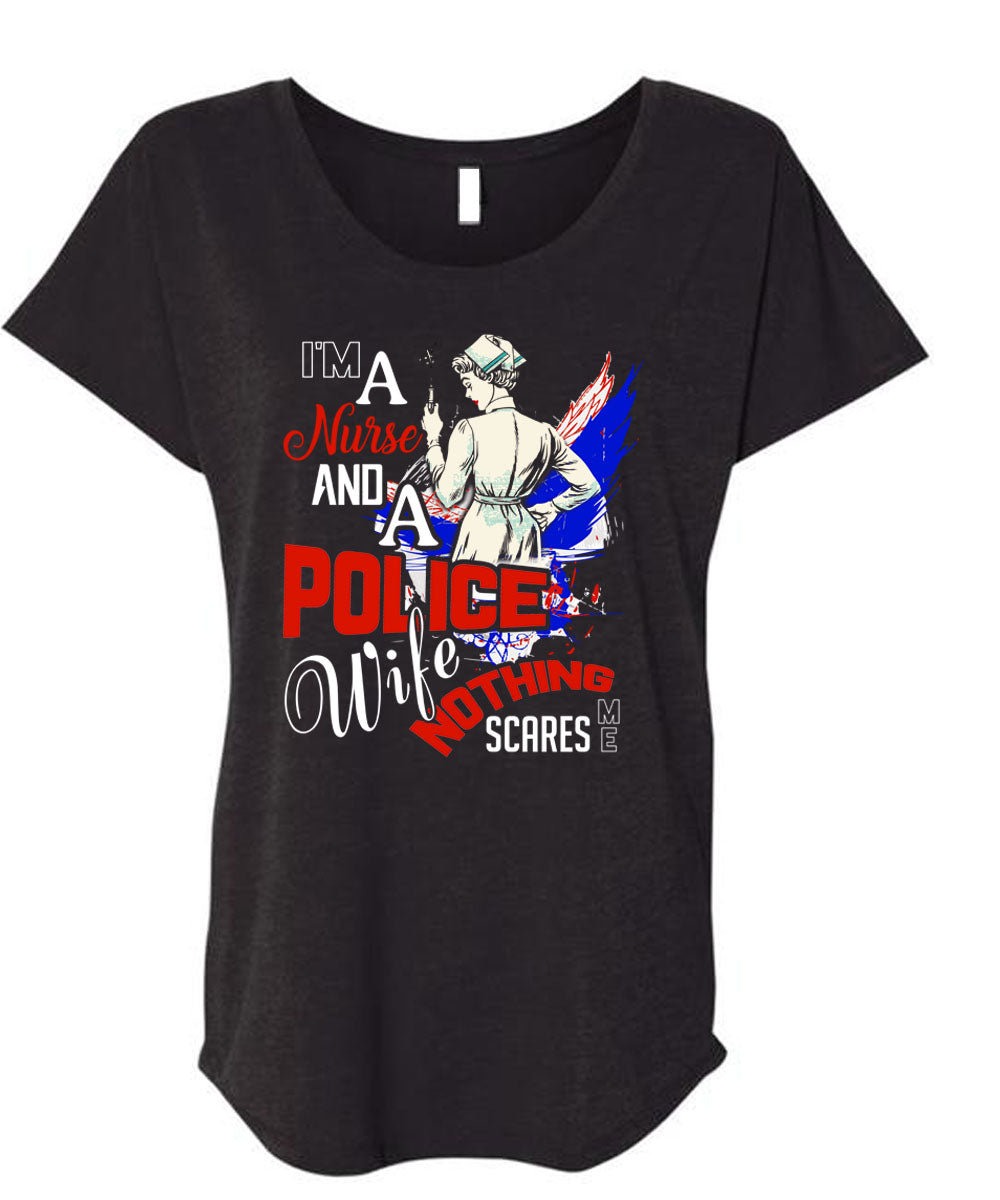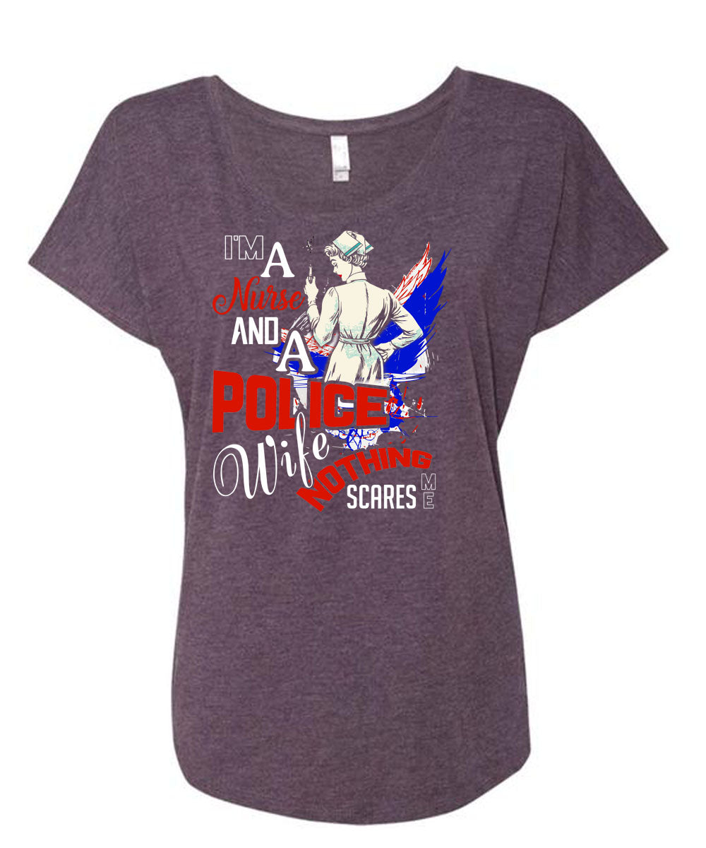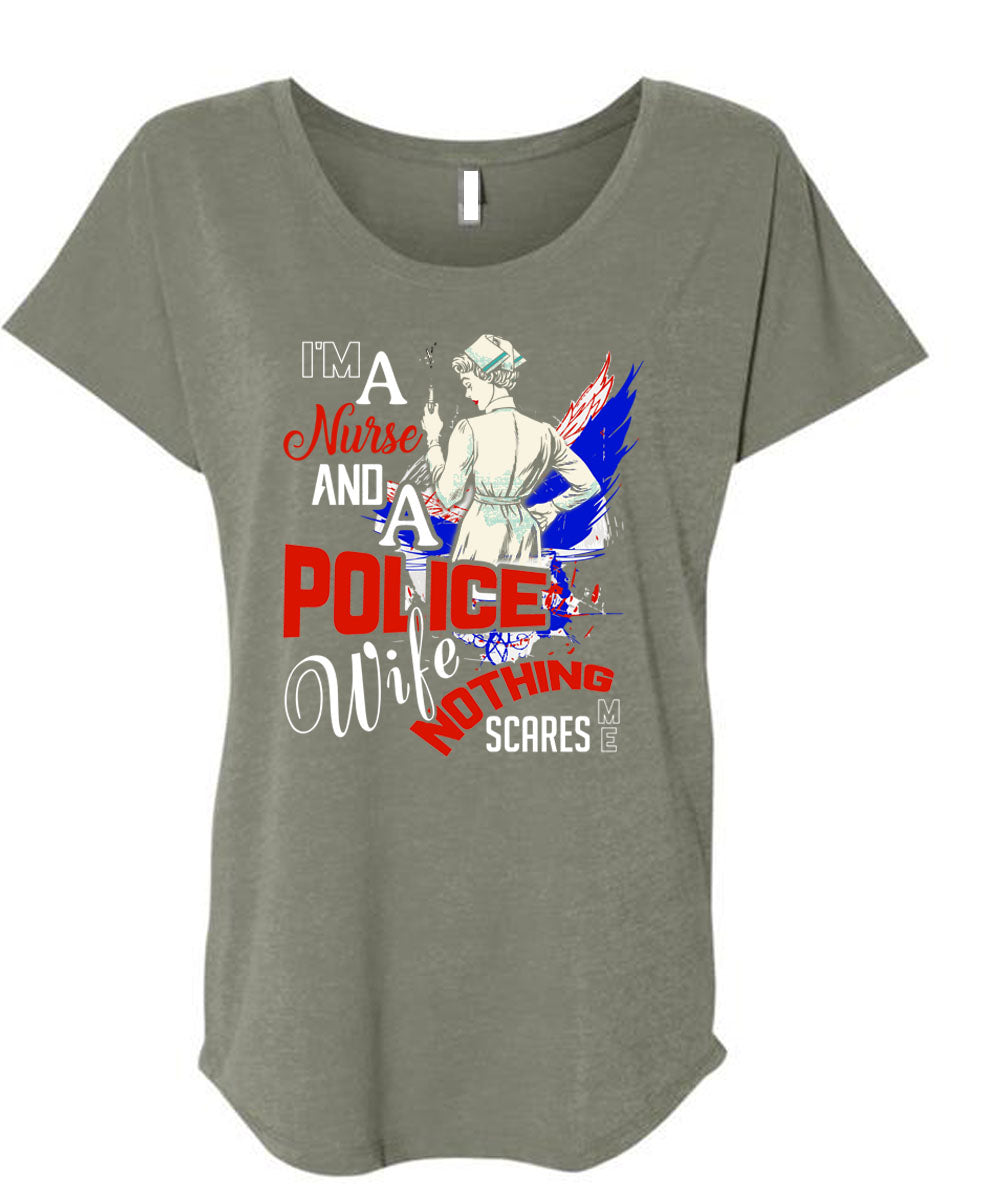I'm A Nurse And A Police Wife T Shirt, I Love Nursing T Shirt, Cool Shirt (Ladies' Triblend Dolman Sleeve)