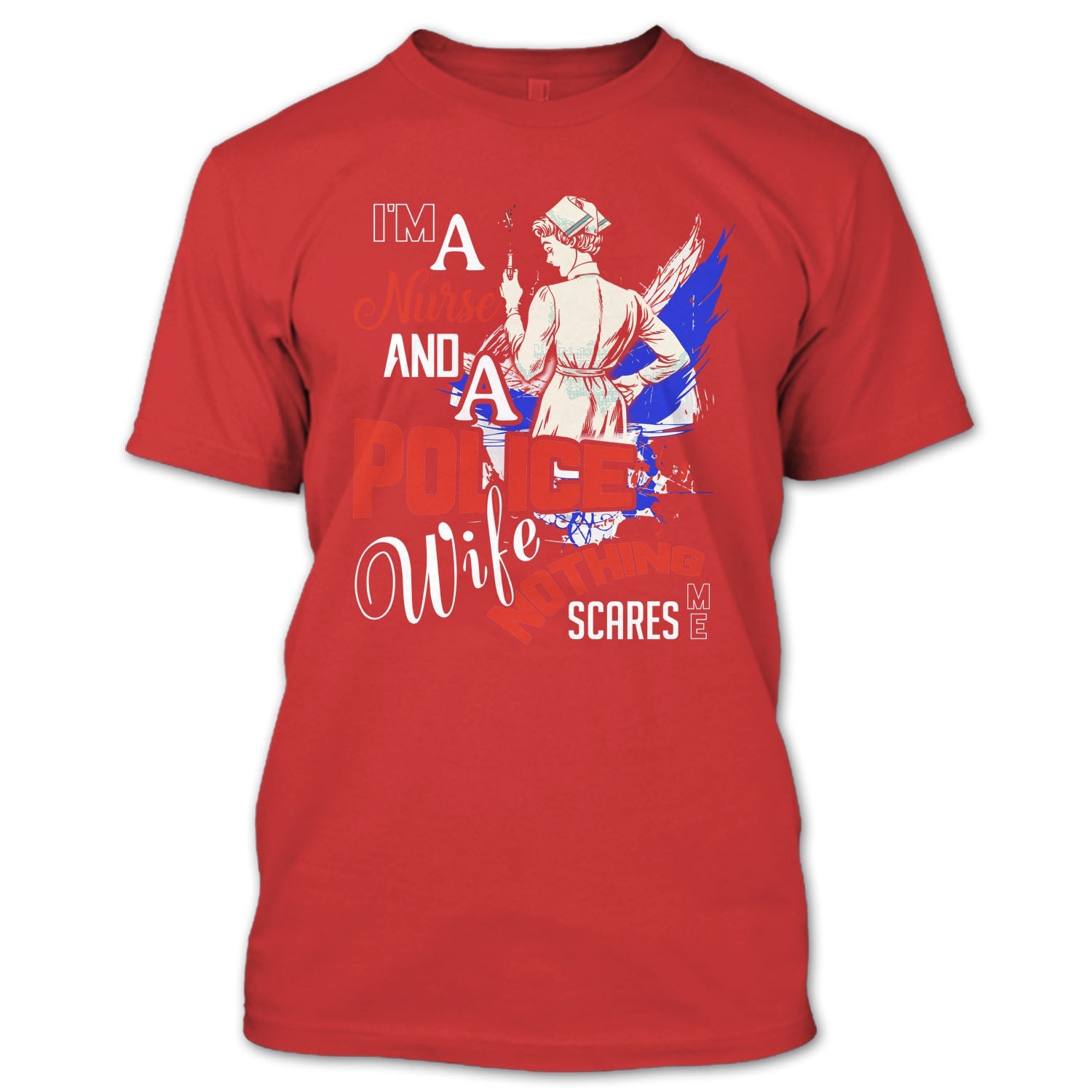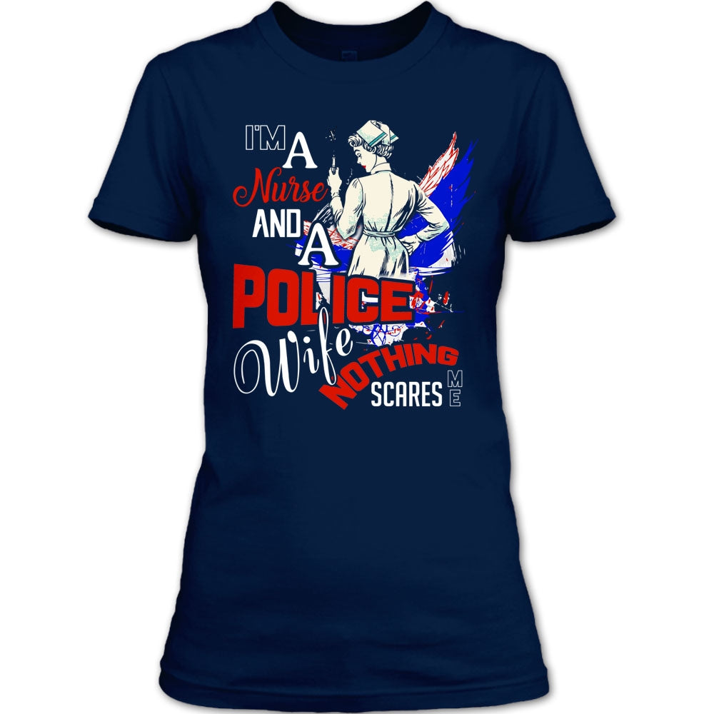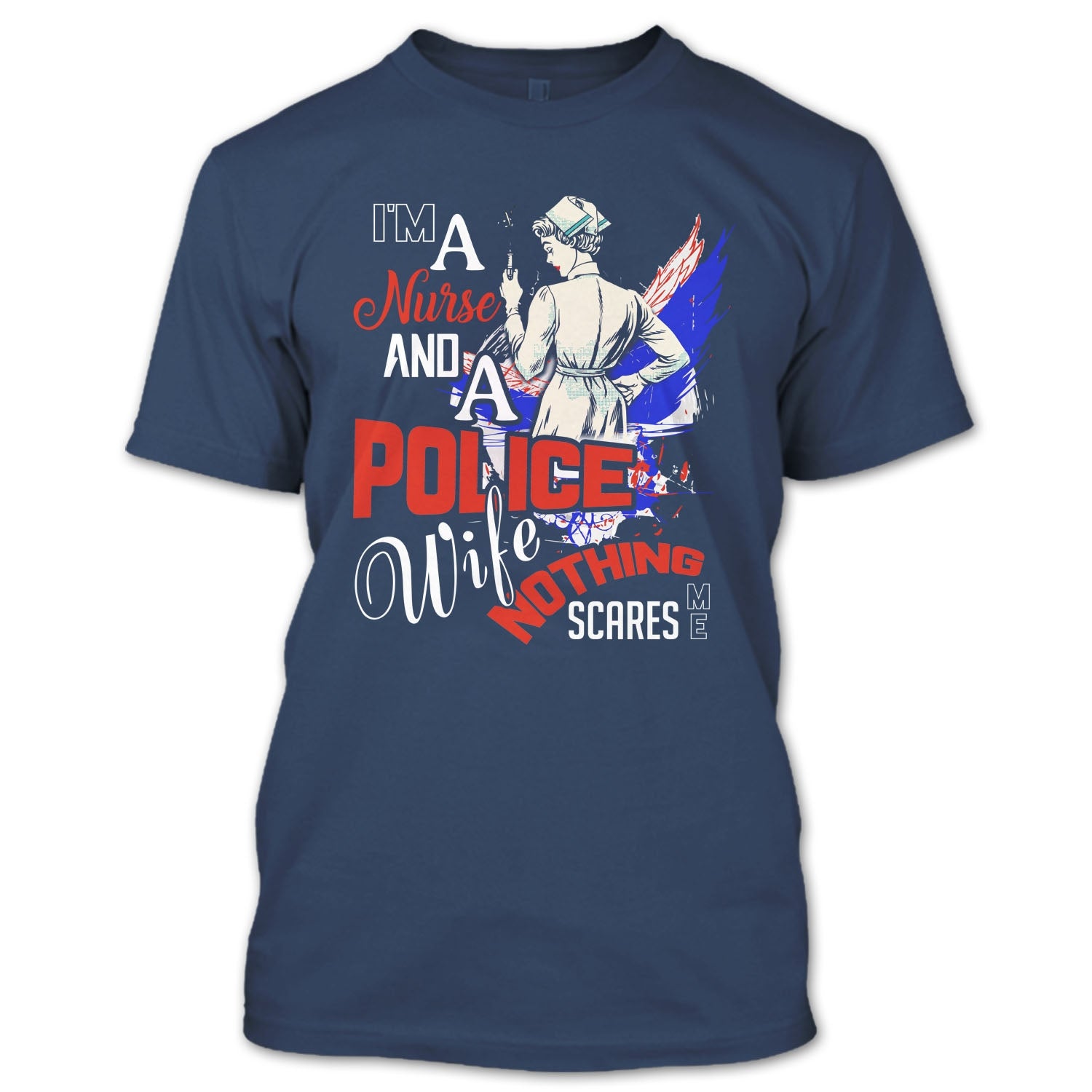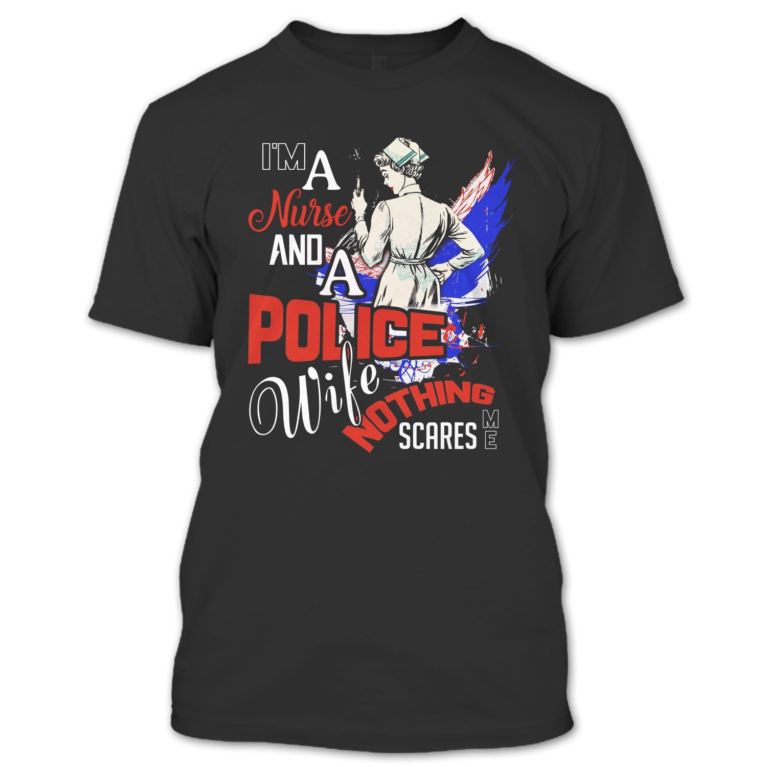 I'm A Nurse And A Police Wife T Shirt, Nothing Scares Me T Shirt
