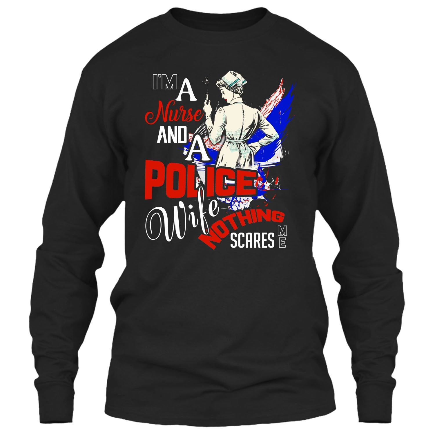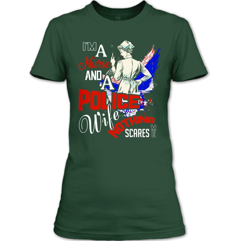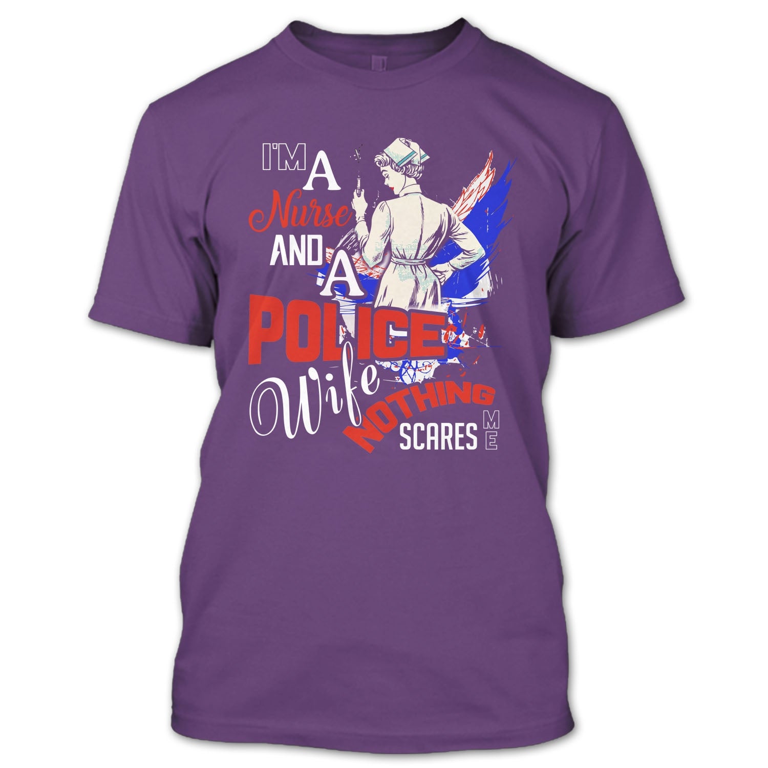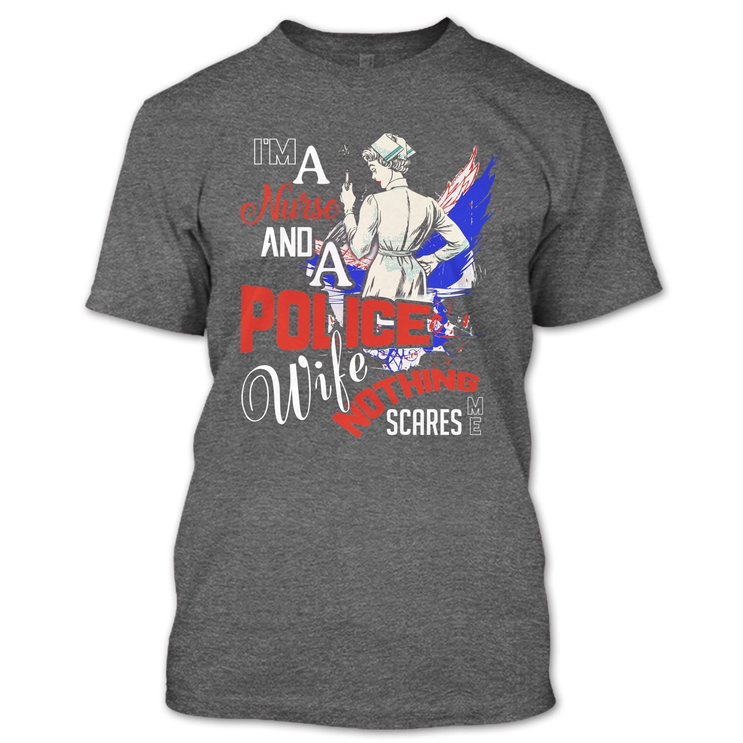 I'm A Nurse And A Police Wife T Shirt, Nothing Scares Me T Shirt