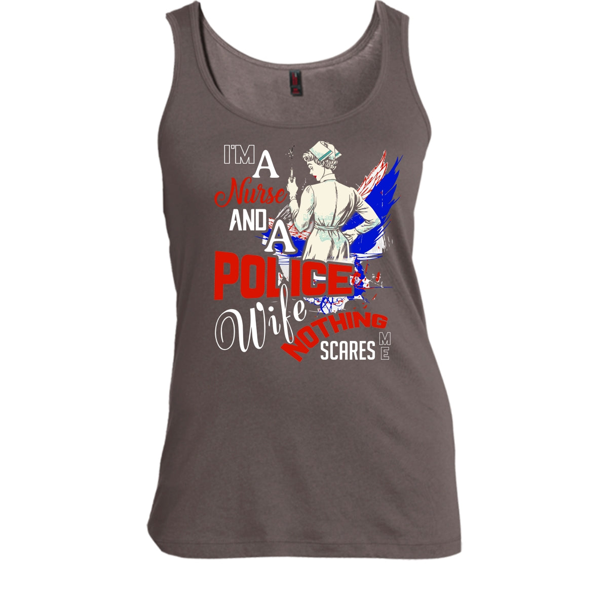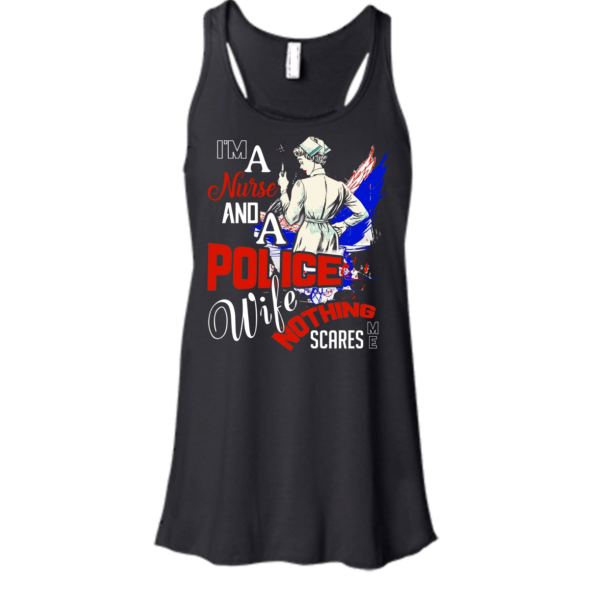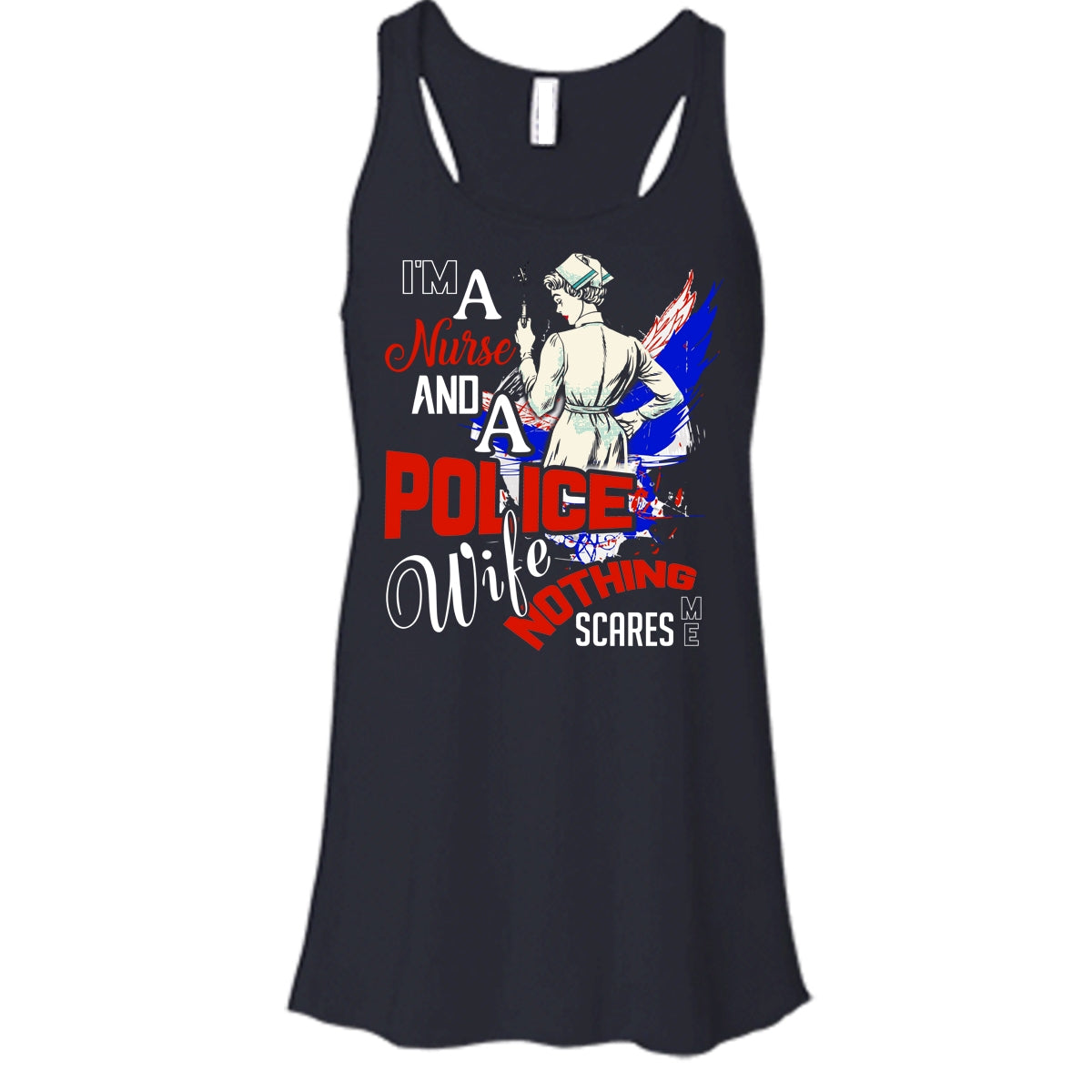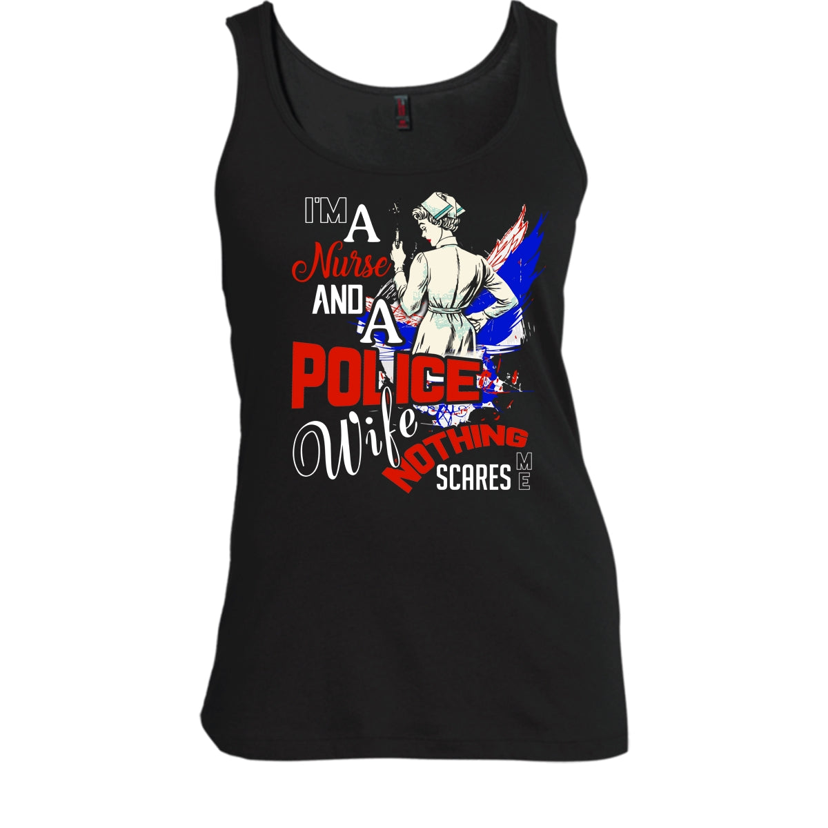I'm A Nurse And A Police Wife T Shirt, Nothing Scares Me T Shirt, Cool T Shirt