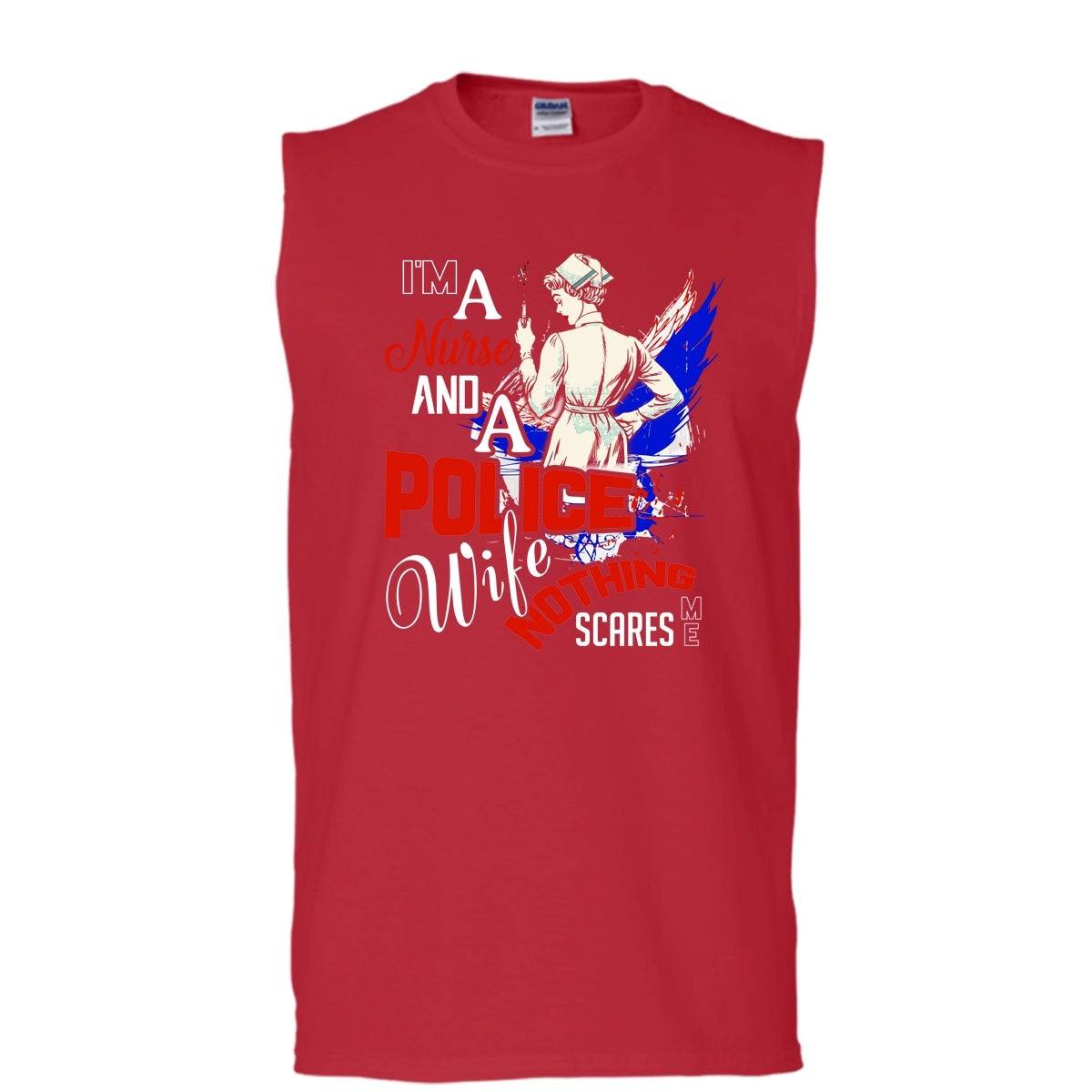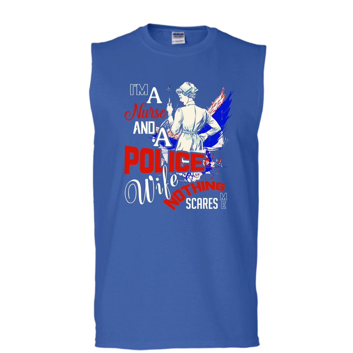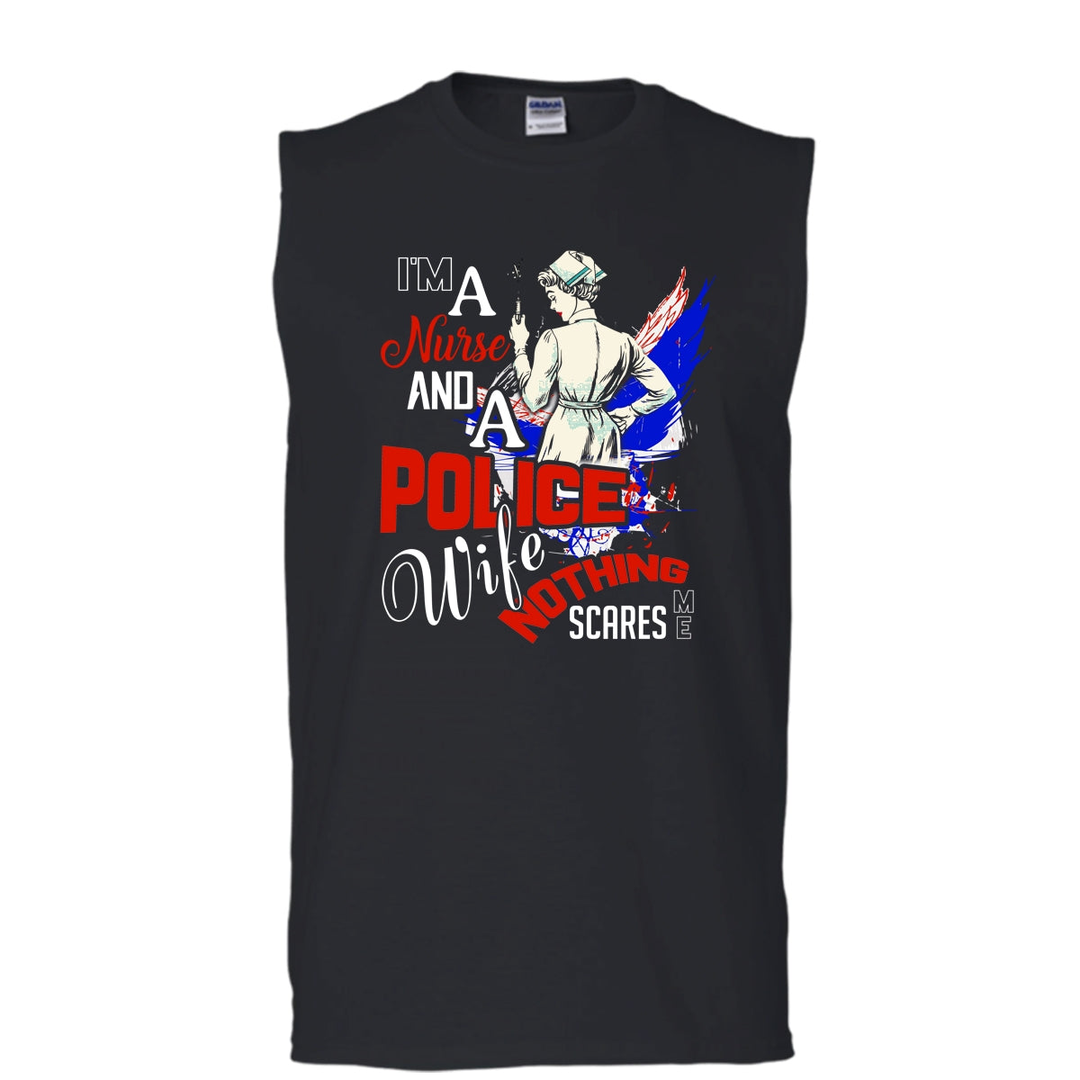 I'm A Nurse And A Police Wife T Shirt, Nothing Scares Me T Shirt, Cool T Shirt (Men's Cotton Sleeveless)