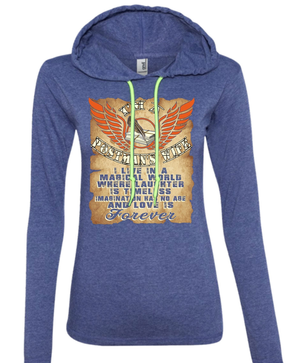 I'm A Postman's Wife T Shirt, I Live In A Magical World T Shirt (Anvil Ladies Ringspun Hooded)