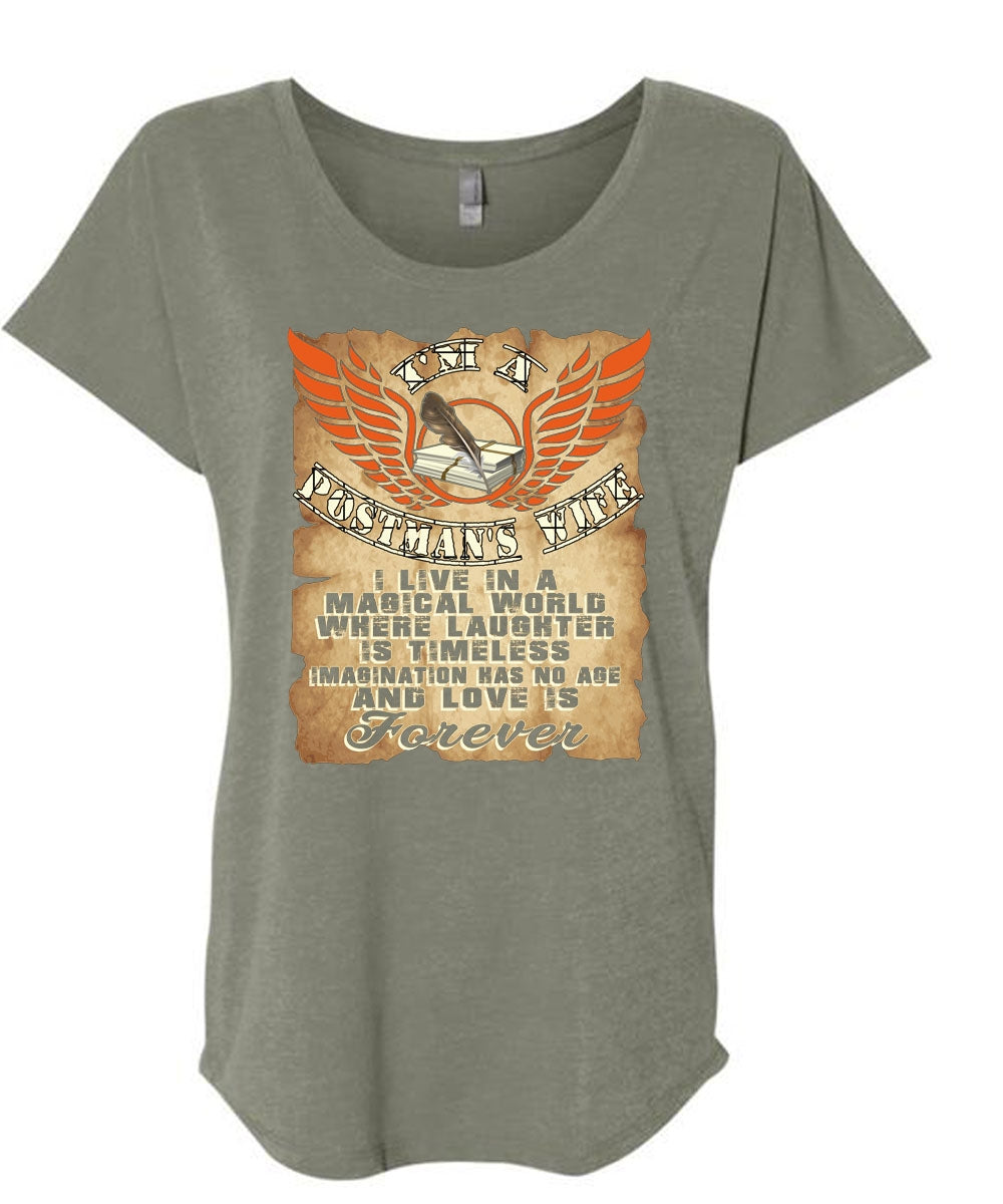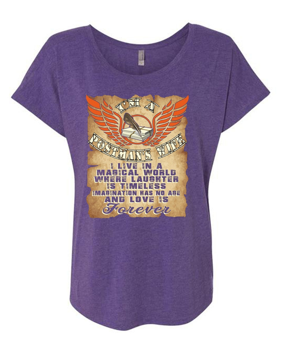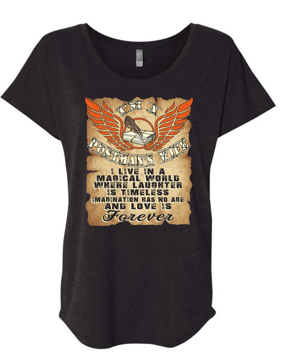 I'm A Postman's Wife T Shirt, I Live In A Magical World T Shirt, Cool Shirt (Ladies' Triblend Dolman Sleeve)