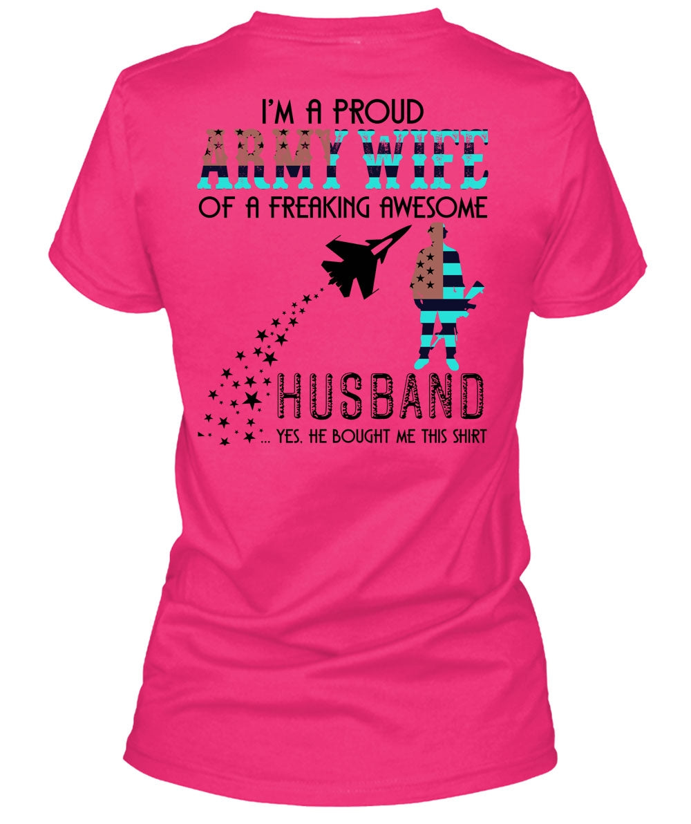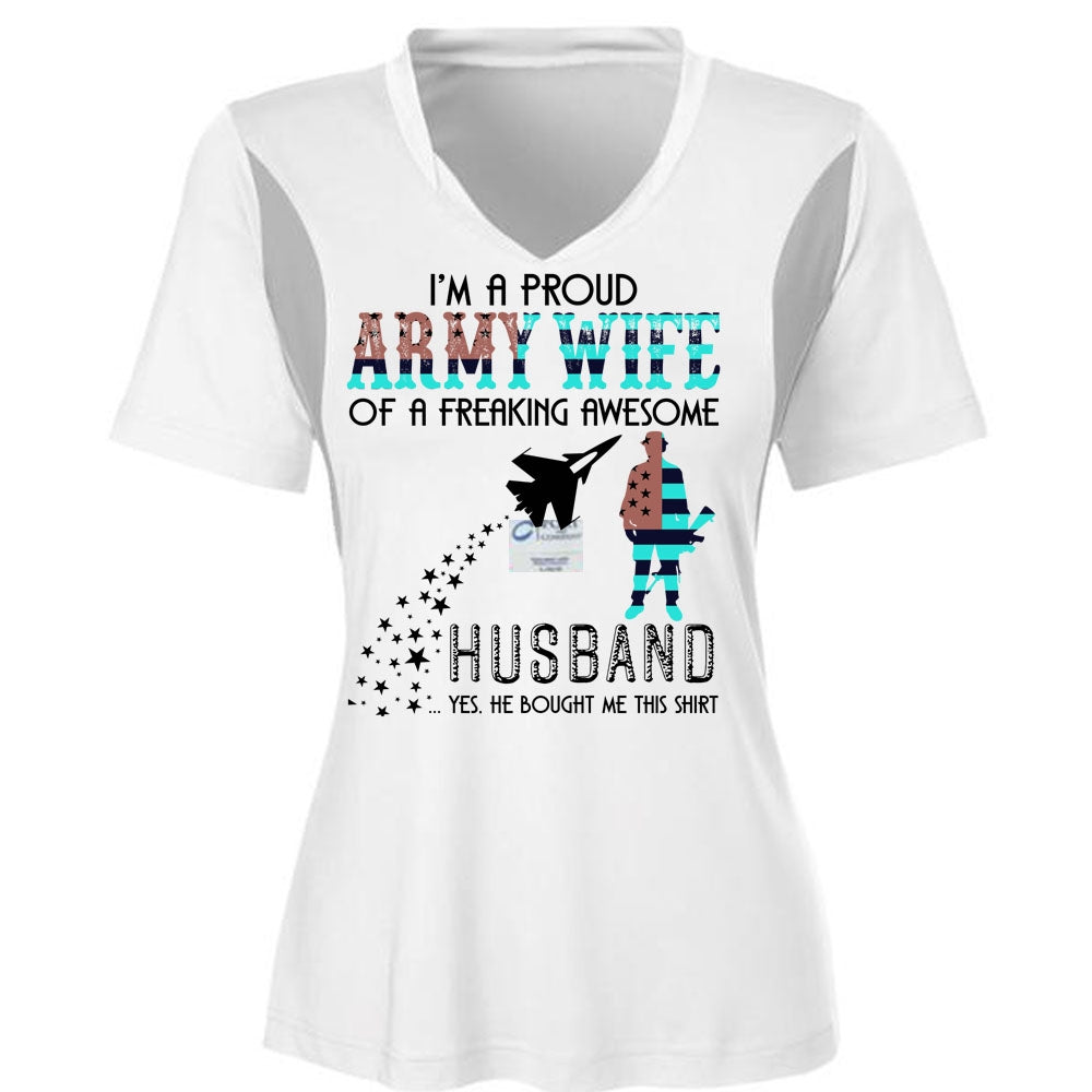 I'm A Proud Army Wife T Shirt, Freaking Awesome Husband T Shirt, Cool Shirt (Ladies LS Heather V-Neck)