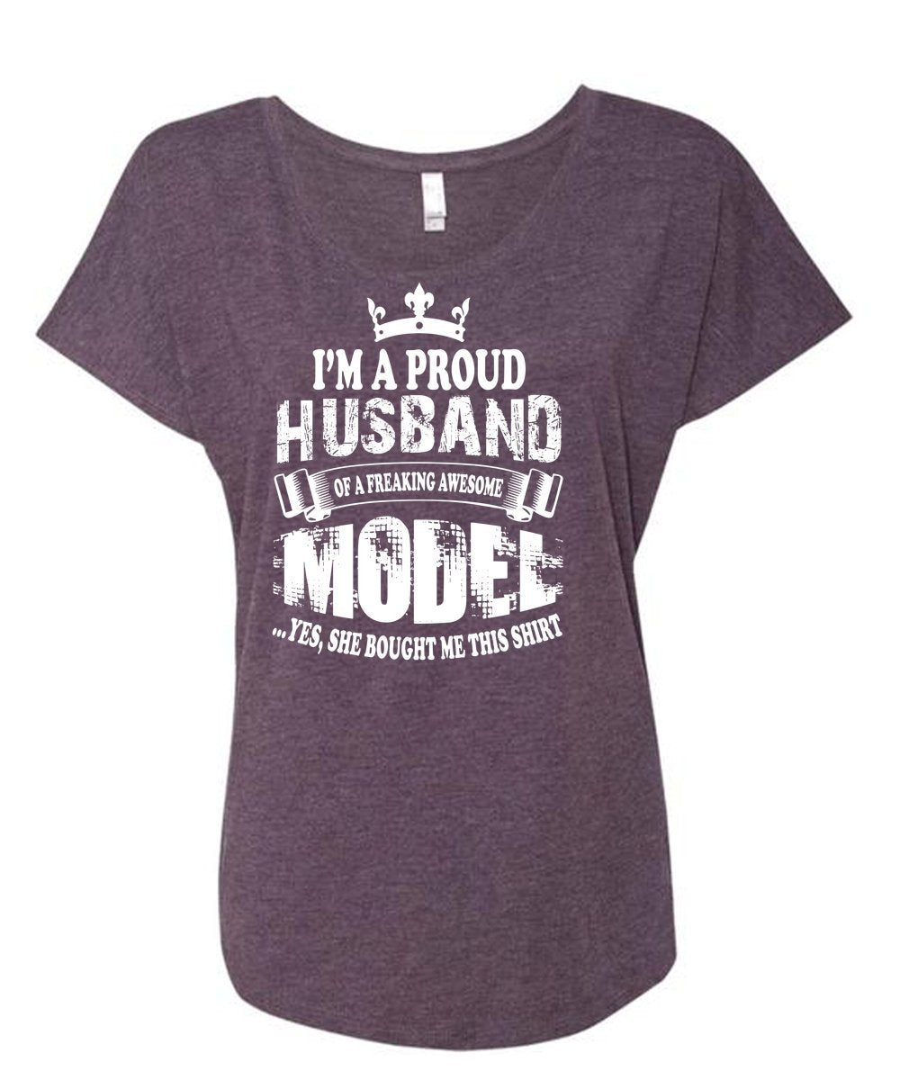 I'm A Proud Husband Of A Freaking Awesome Model T Shirt, Family T Shirt (Ladies' Triblend Dolman Sleeve)