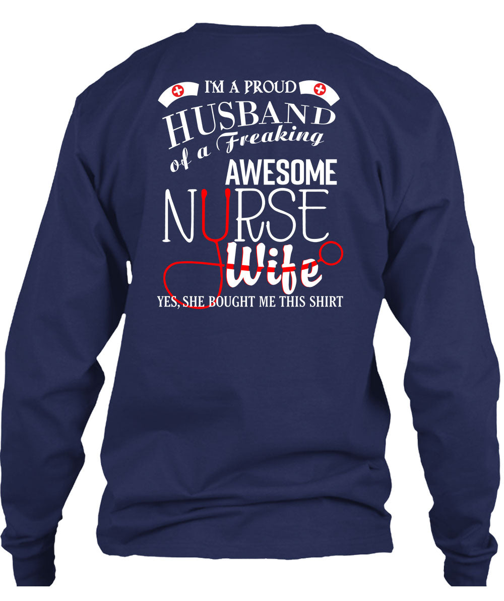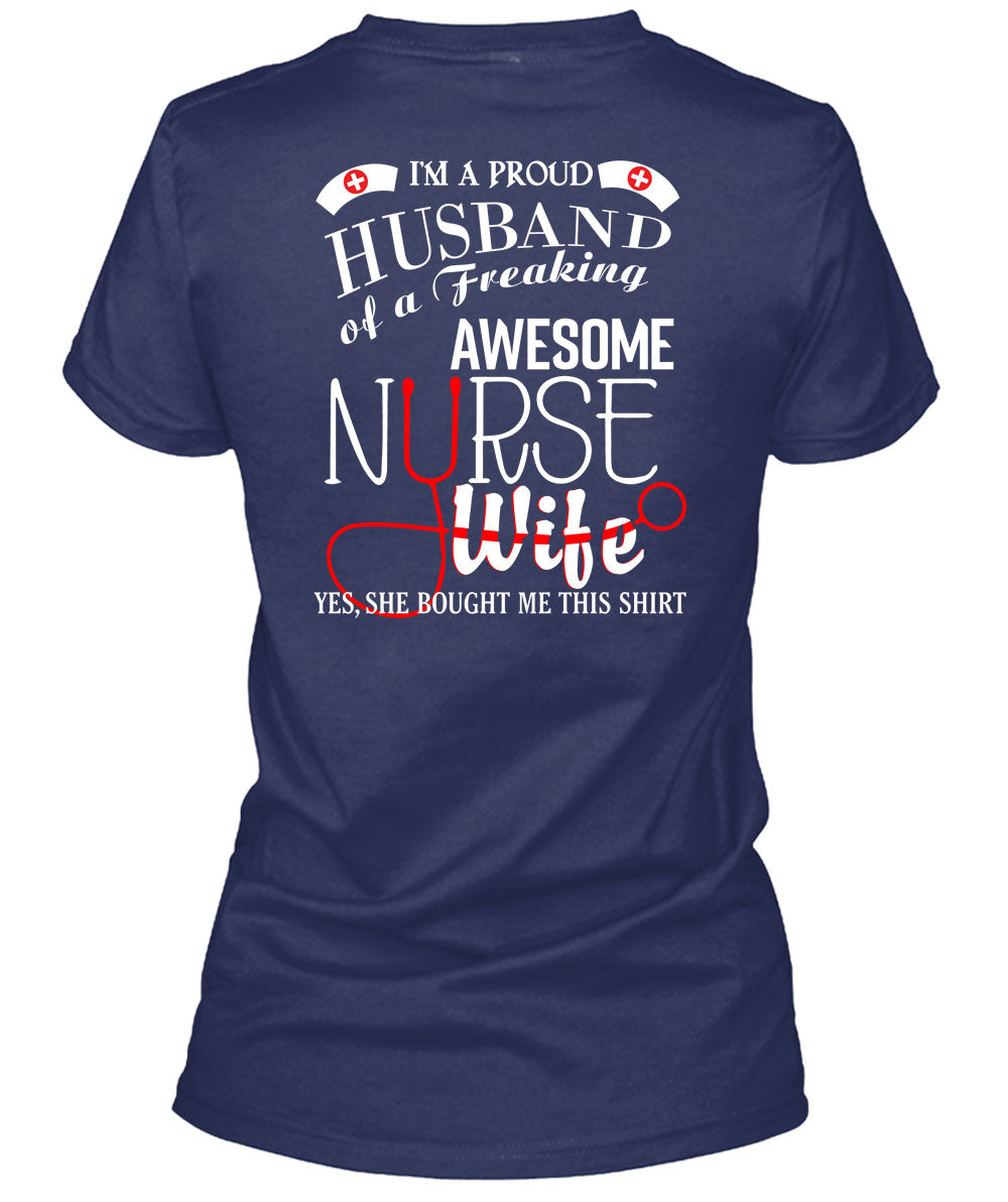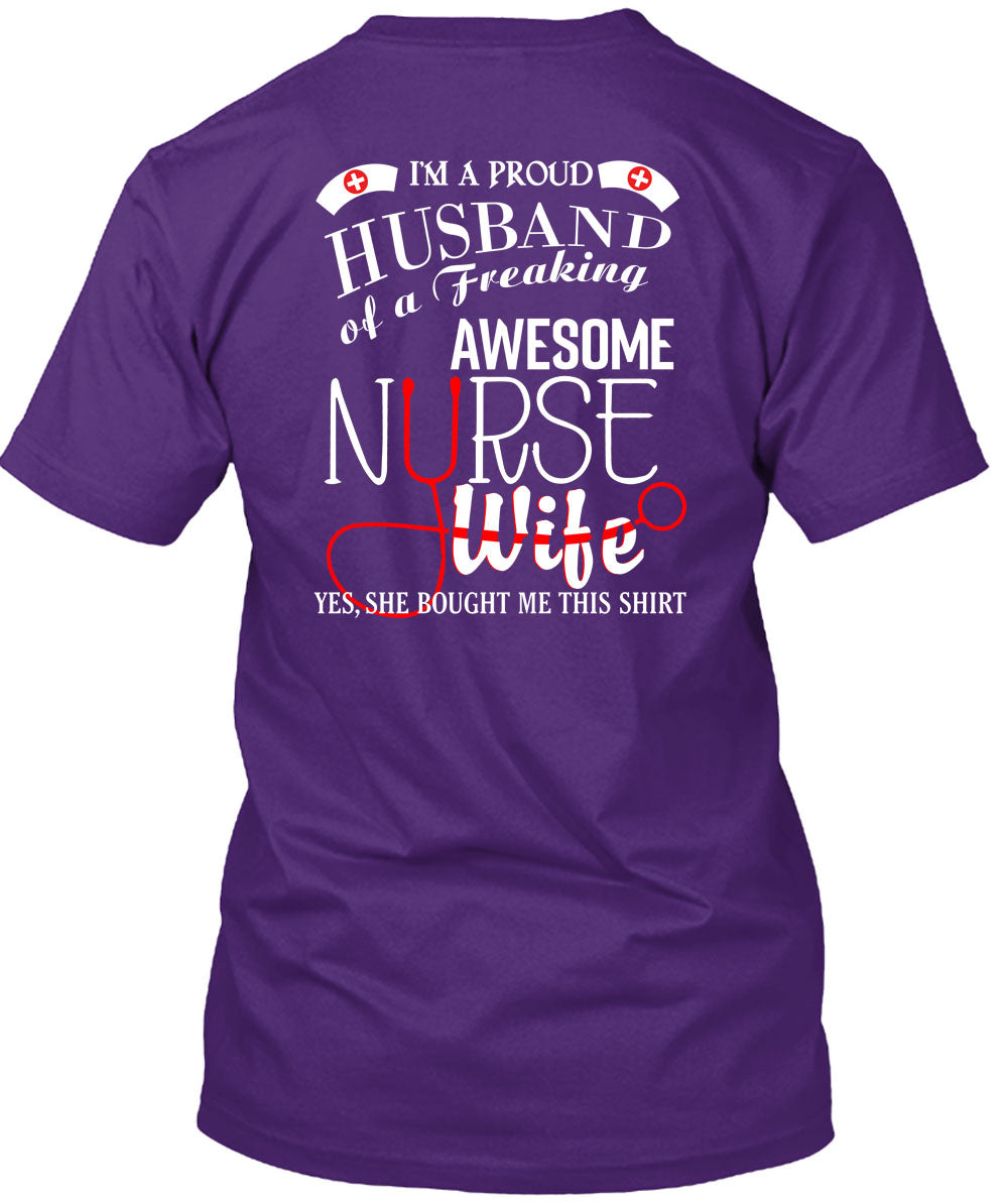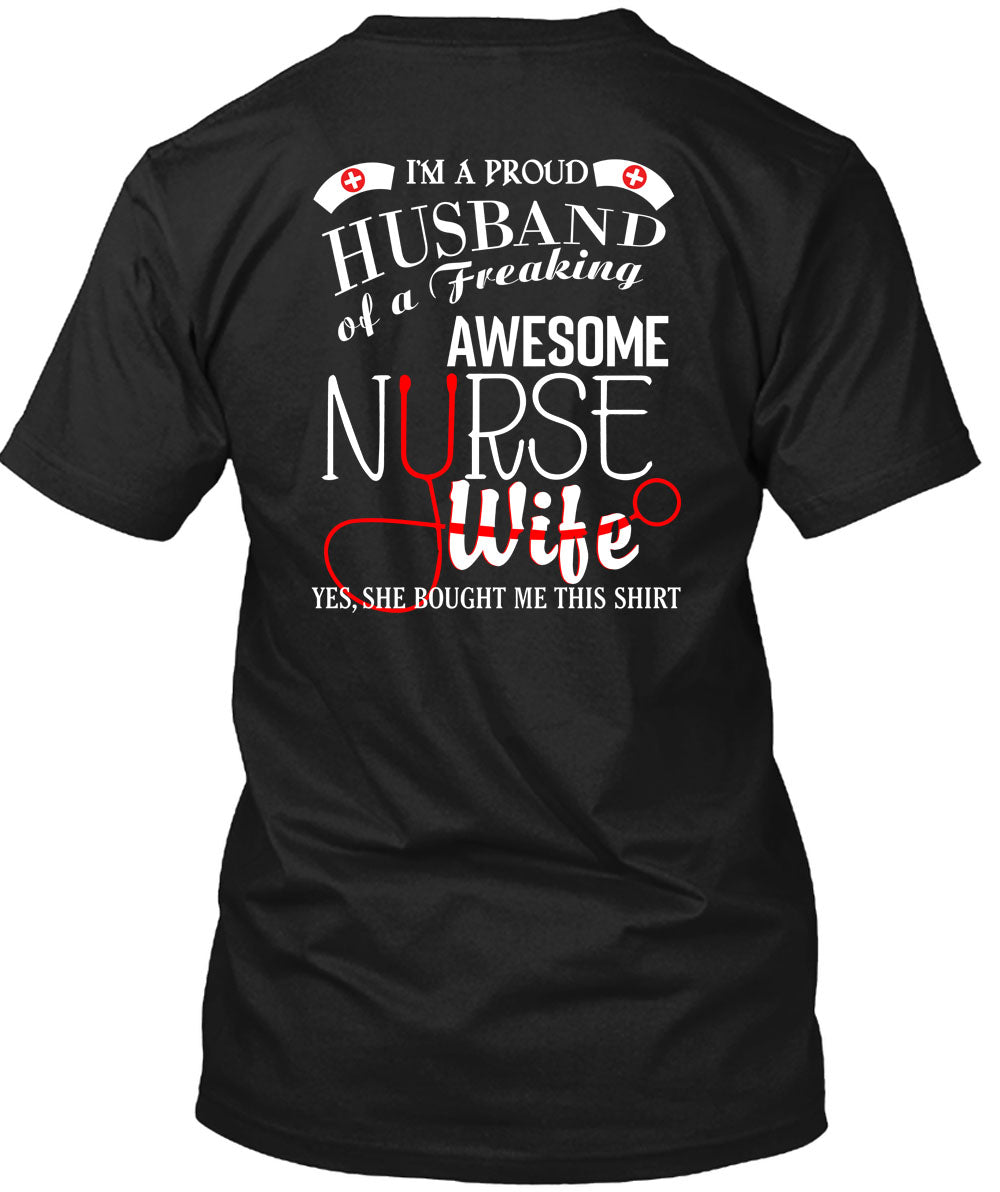 I'm A Proud Husband Of A Freaking Awesome Nurse Wife T Shirt, I Love Nurse T Shirt