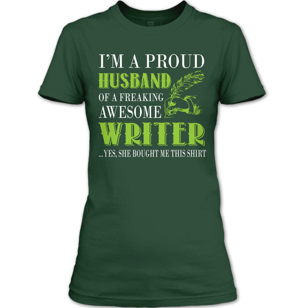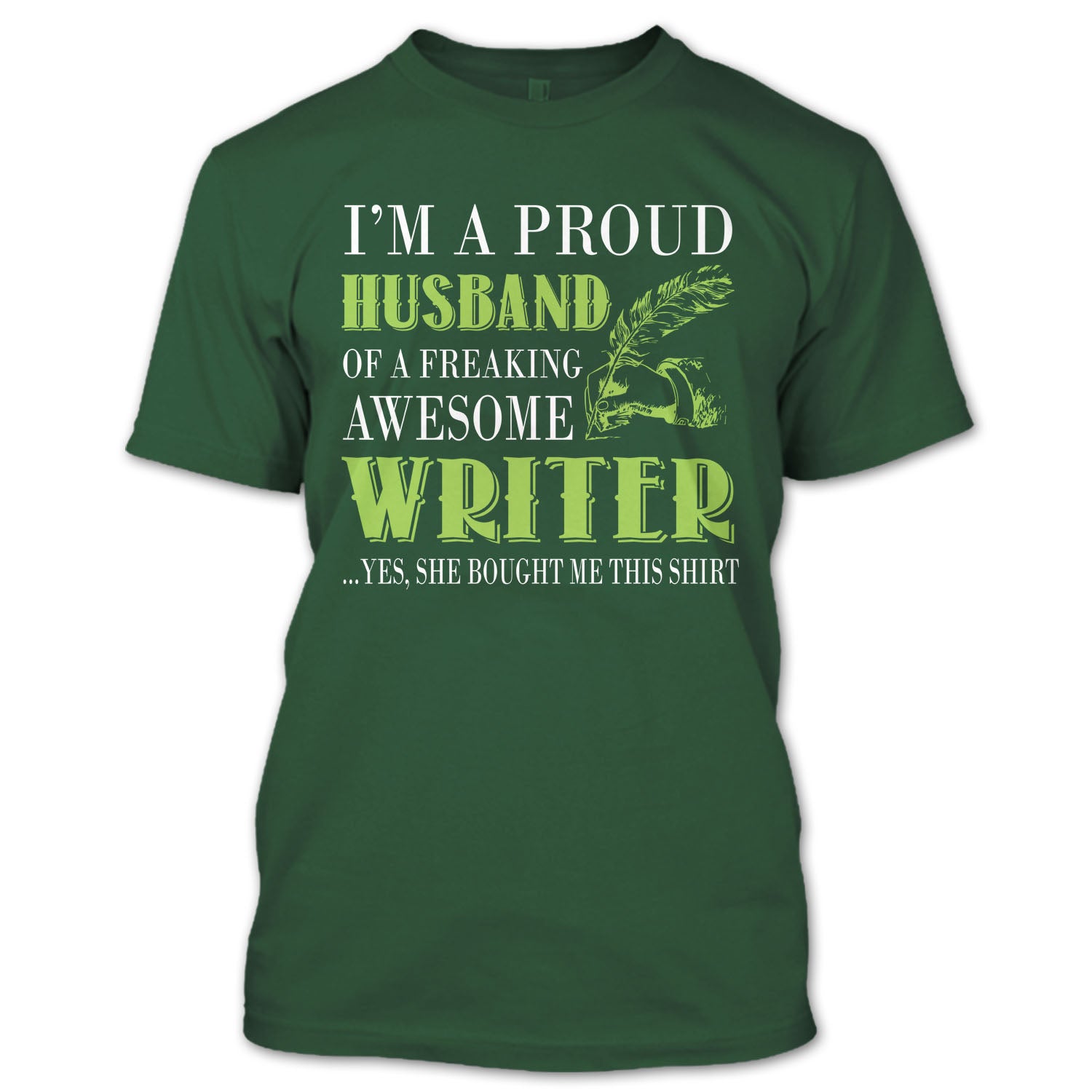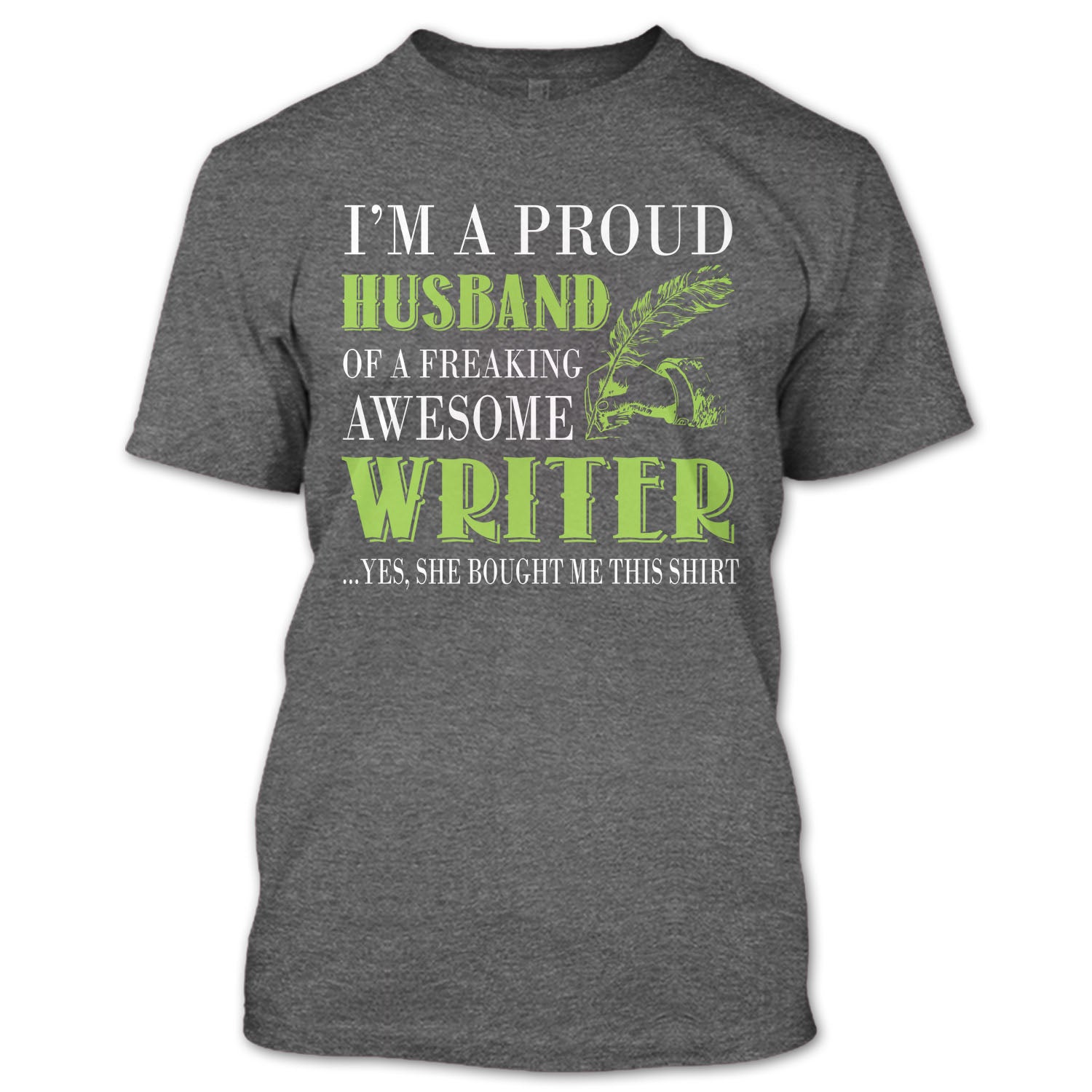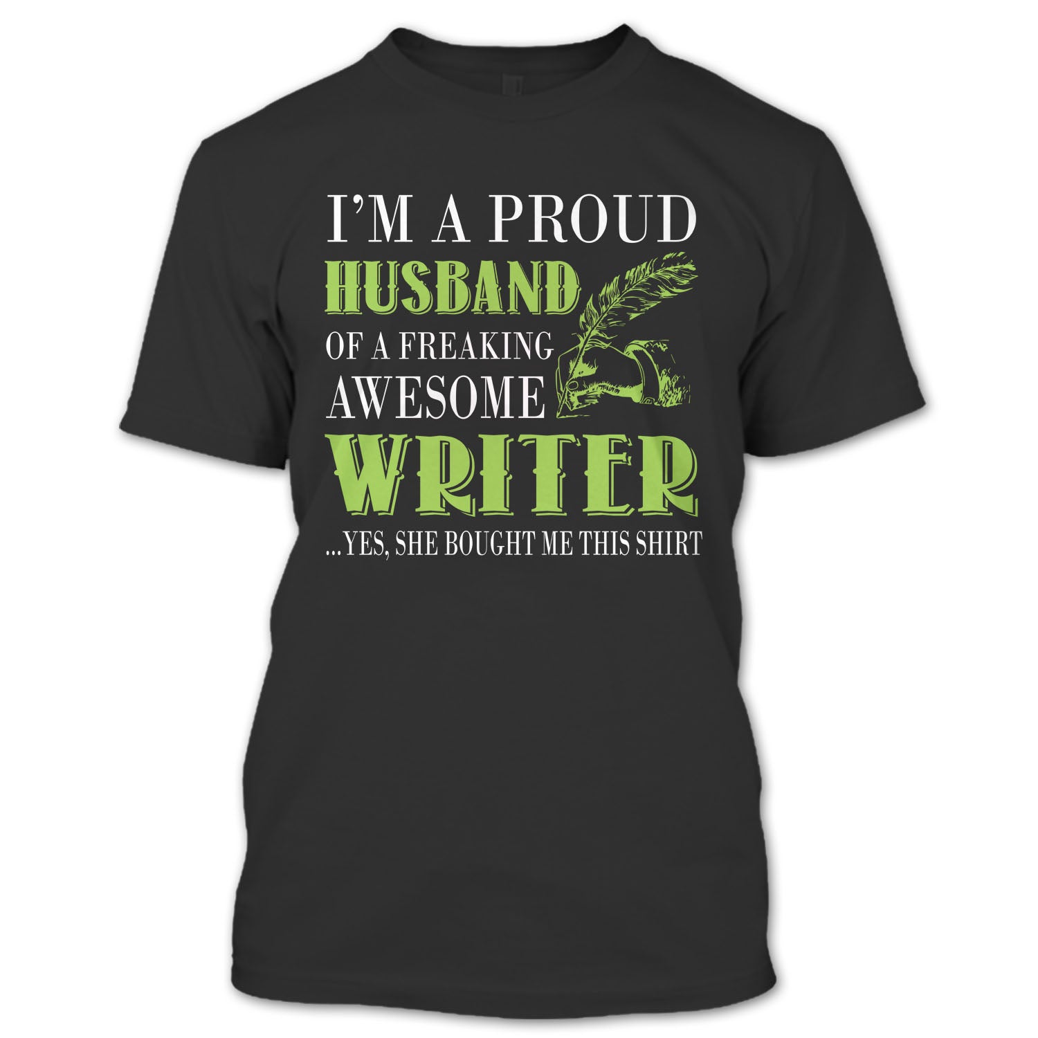 I'm A Proud Husband Of A Freaking Awesome Writer T Shirt, Yes She Bought Me This Shirt T Shirt