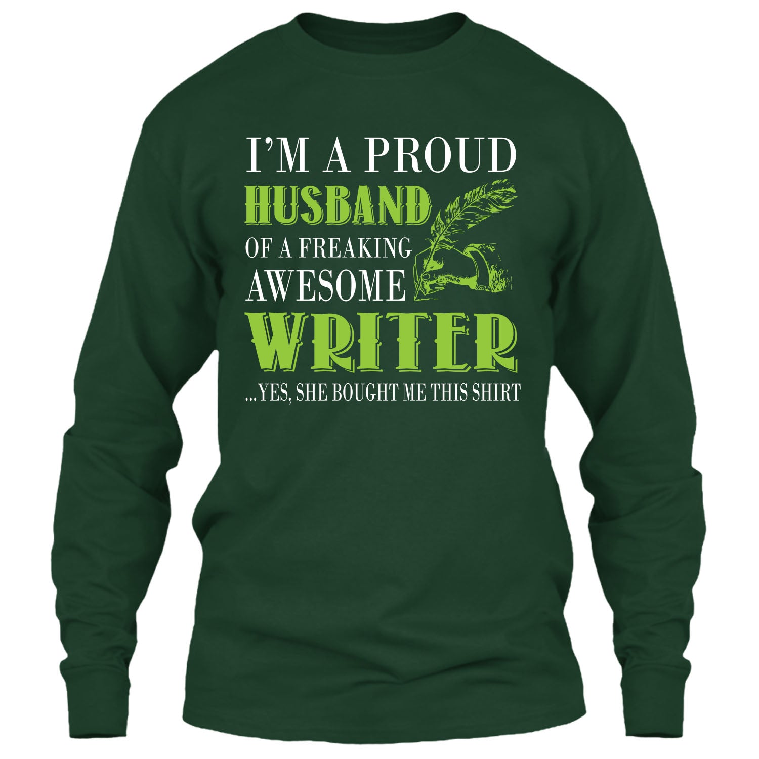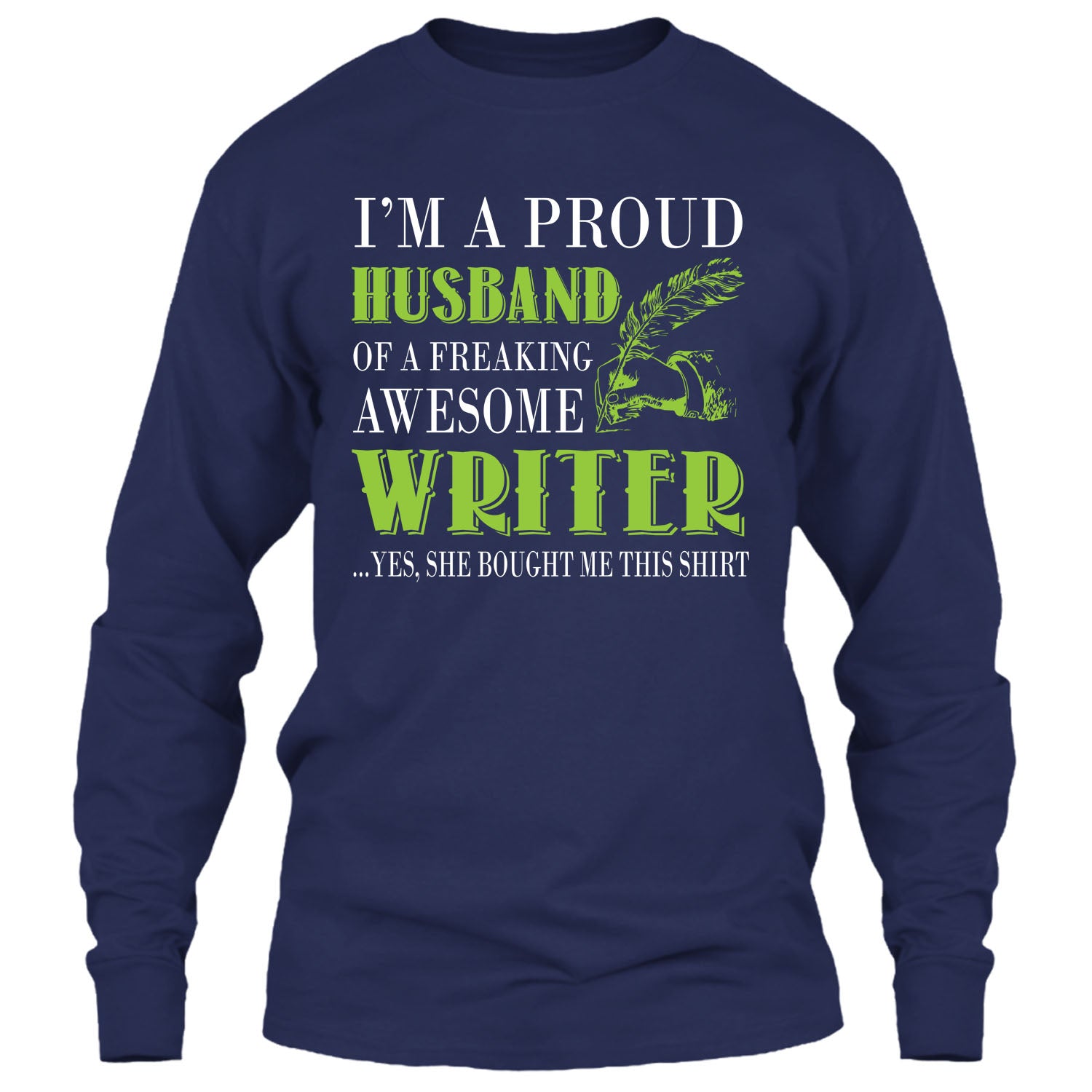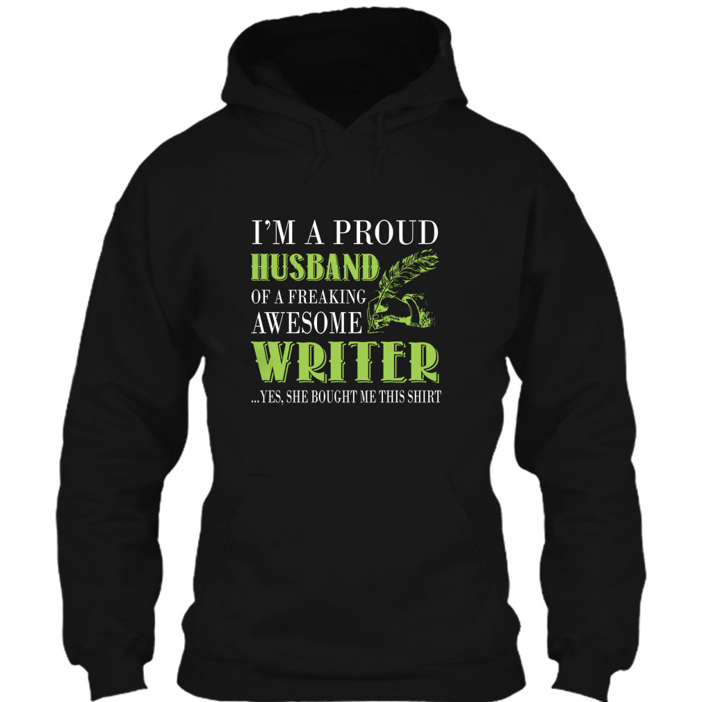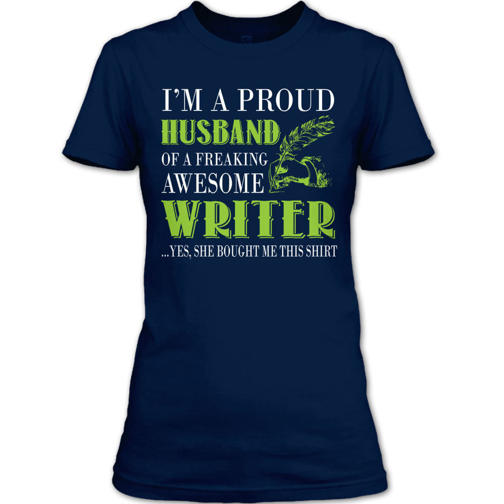 I'm A Proud Husband Of A Freaking Awesome Writer T Shirt, Yes She Bought Me This Shirt T Shirt