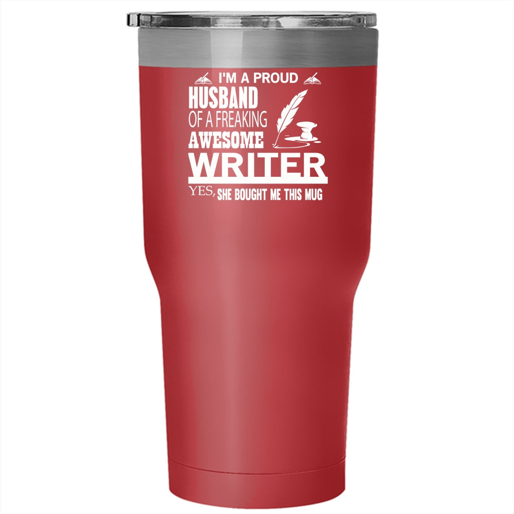 I'm A Proud Husband Of A Writer Tumbler 30 oz Stainless Steel, Cool Writer's Husband Travel Mug