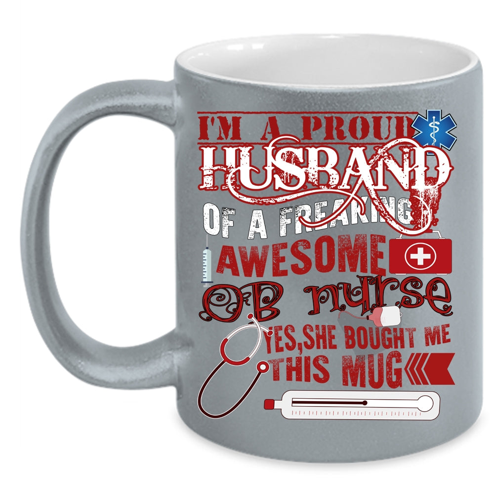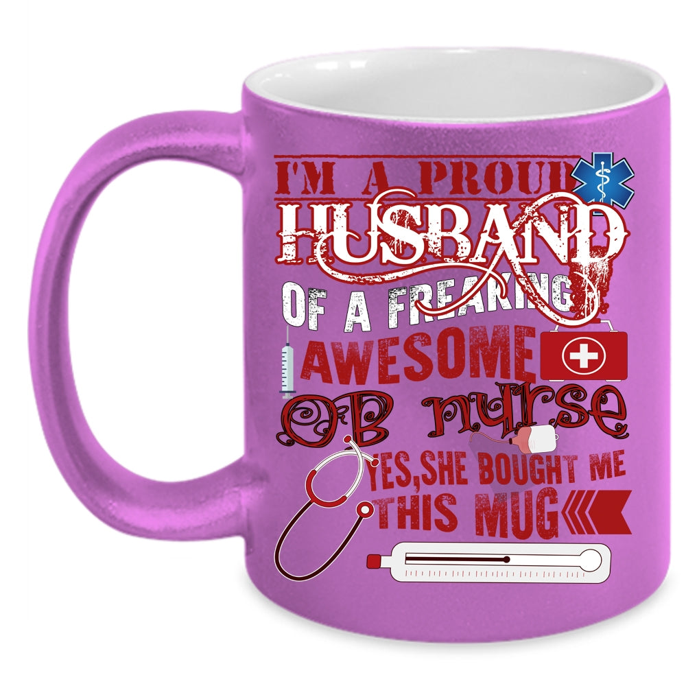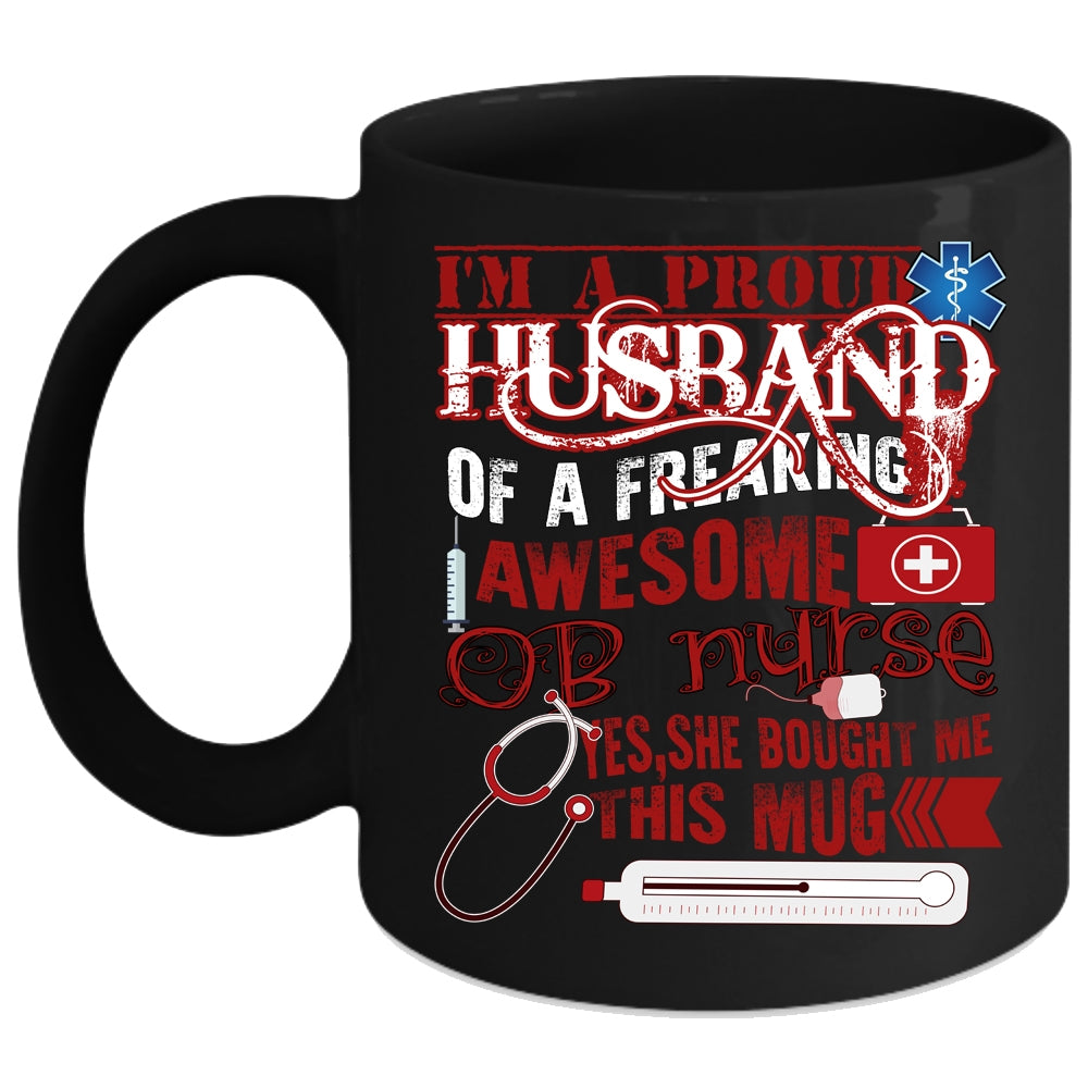 I'm A Proud Husband Of An OB Nurse Coffee Mug, Cute Nurse's Husband Coffee Cup