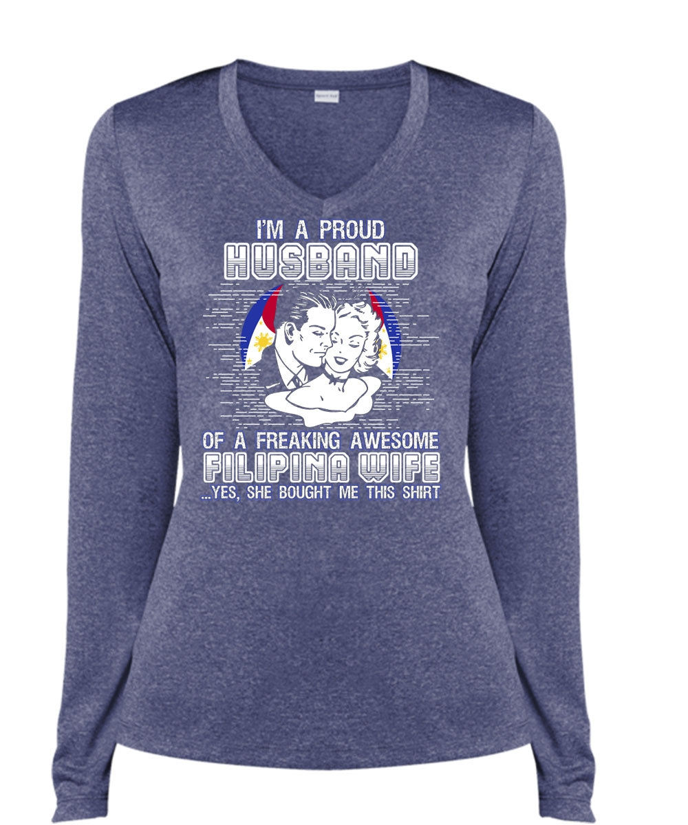 I'm A Proud Husband T Shirt, Filipina Wife T Shirt, Cool Shirt (Ladies LS Heather V-Neck)