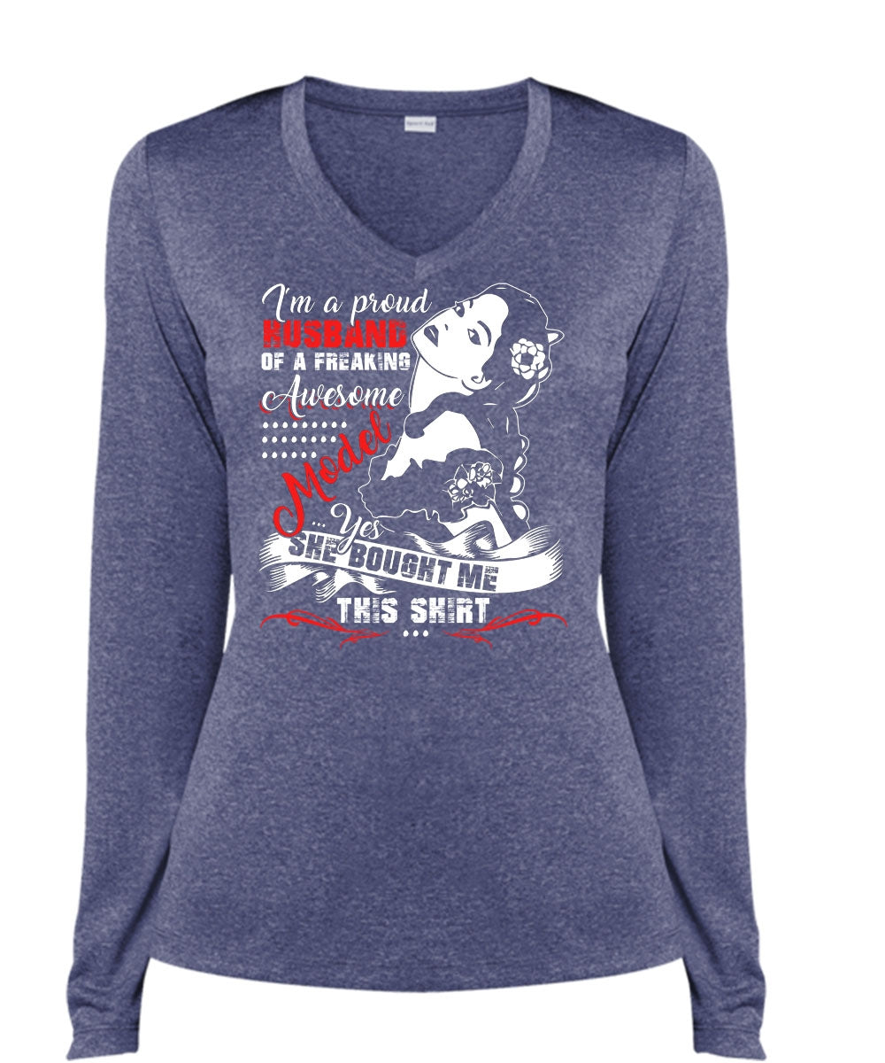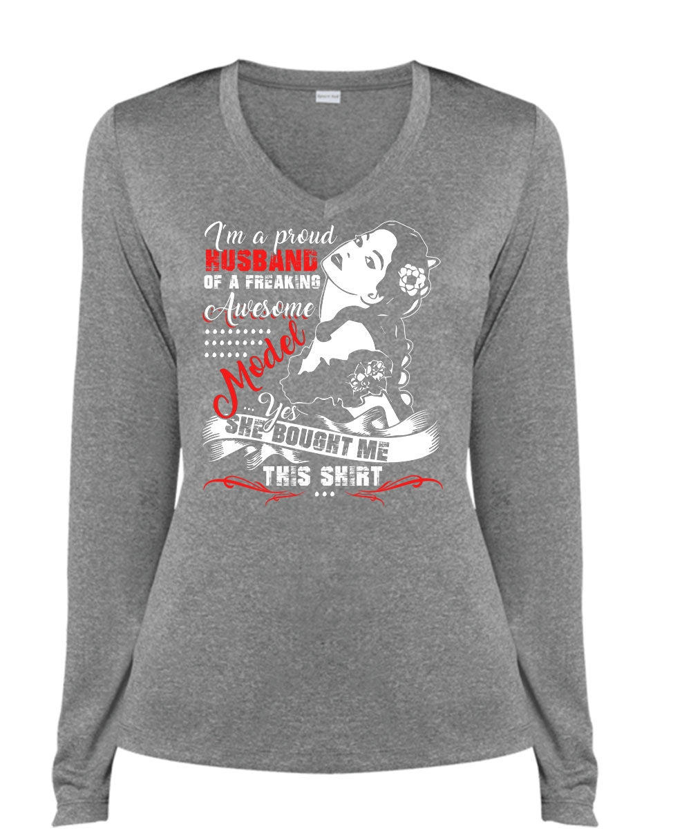 I'm A Proud Husband T Shirt, Freaking Awesome Model T Shirt, Cool Shirt (Ladies LS Heather V-Neck)