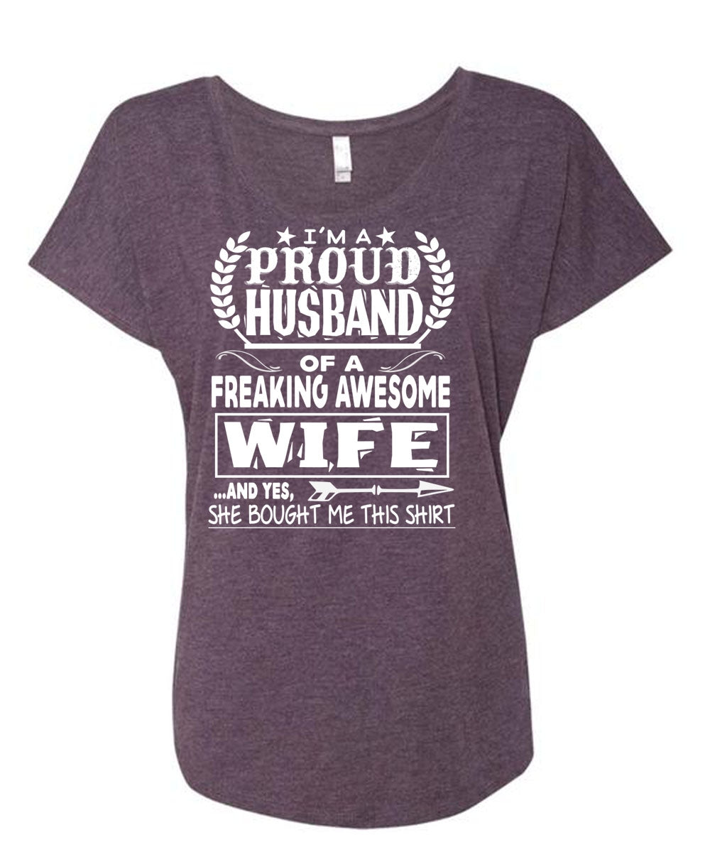 I'm A Proud Husband T Shirt, Freaking Awesome Wife T Shirt, Cool Shirt (Ladies' Triblend Dolman Sleeve)