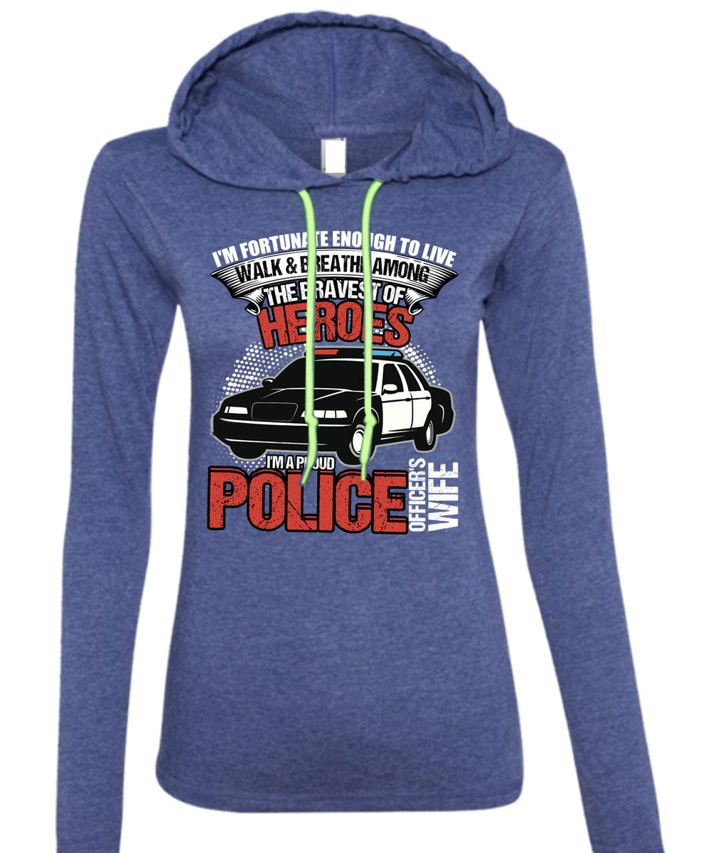 I'm A Proud Police Officer's Wife T Shirt, Being A Police T Shirt (Anvil Ladies Ringspun Hooded)