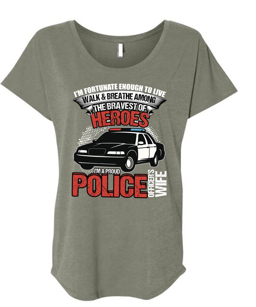 I'm A Proud Police Officer's Wife T Shirt, Being A Police T Shirt, Cool Shirt (Ladies' Triblend Dolman Sleeve)