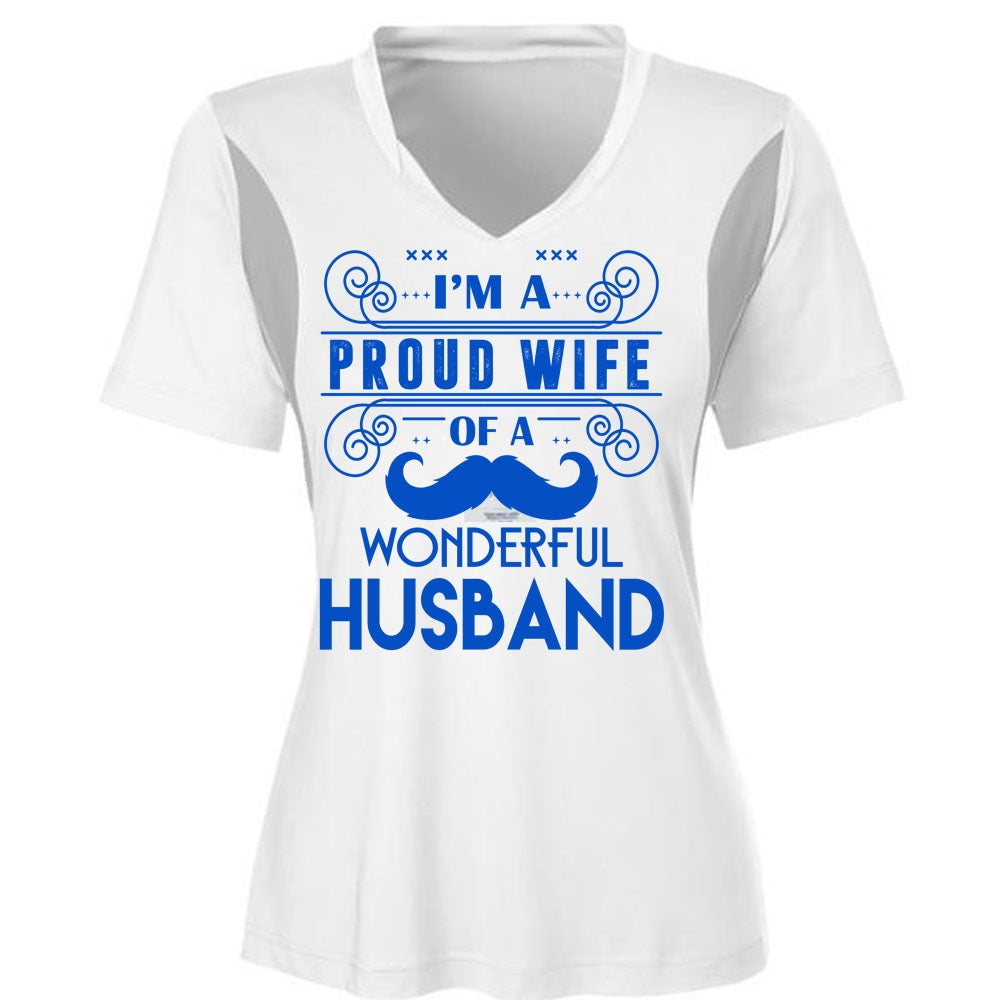 I'm A Proud Wife Of A Wonderful Husband T Shirt, Being A Husband T Shirt, Cool Shirt (Ladies LS Heather V-Neck)