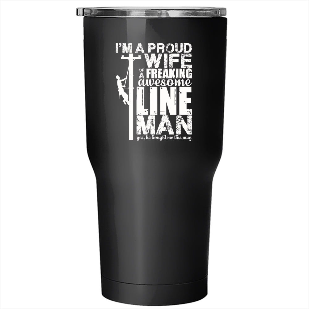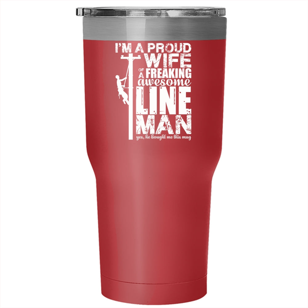 I'm A Proud Wife Of An Awesome Lineman Tumbler 30 oz Stainless Steel, Beautiful Wife Travel Mug