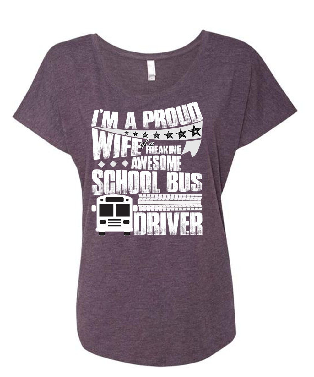 I'm A Proud Wife T Shirt, School Bus Driver T Shirt, Cool Shirt (Ladies' Triblend Dolman Sleeve)