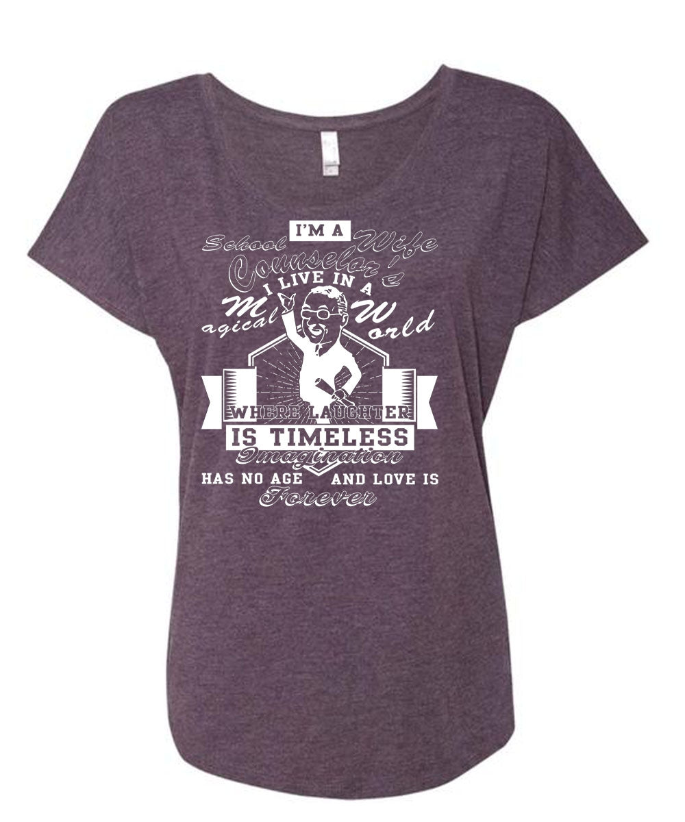 I'm A School Counselor's Wife T Shirt, I Live In A Magical T Shirt, Cool Shirt (Ladies' Triblend Dolman Sleeve)