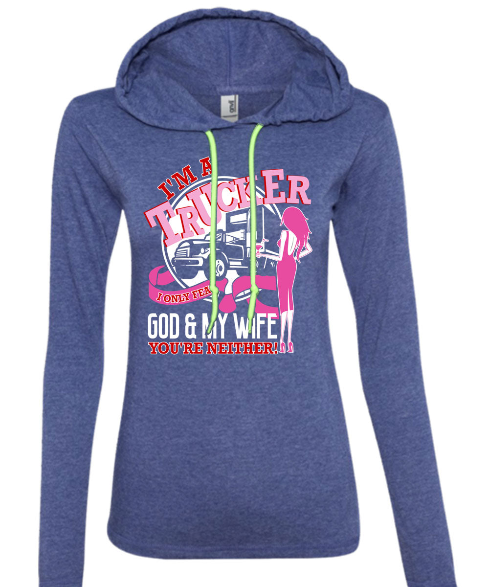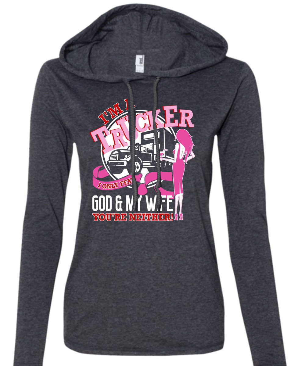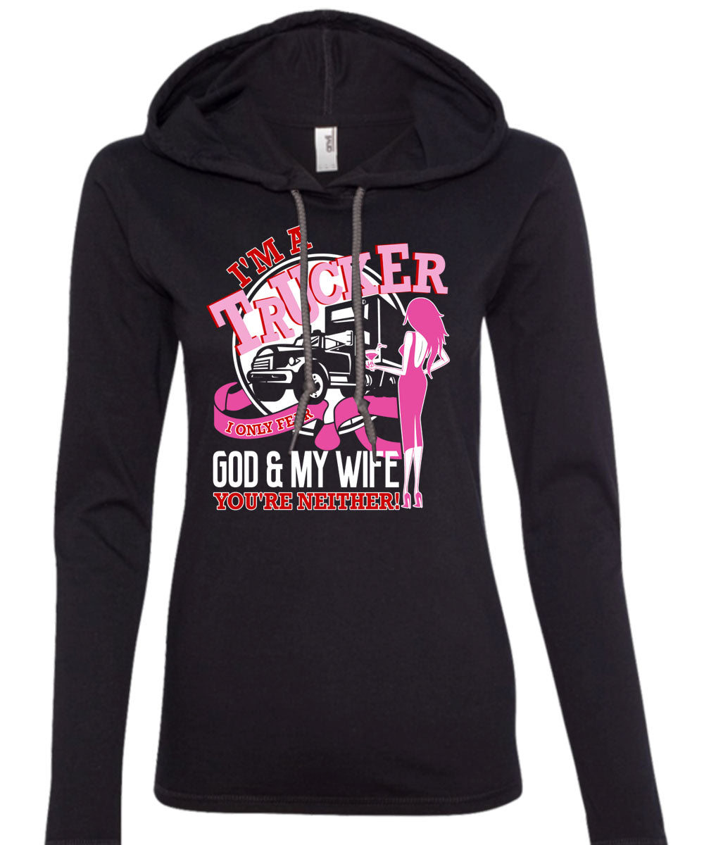 I'm A Trucker T Shirt, I Only Fear God And My Wife T Shirt (Anvil Ladies Ringspun Hooded)