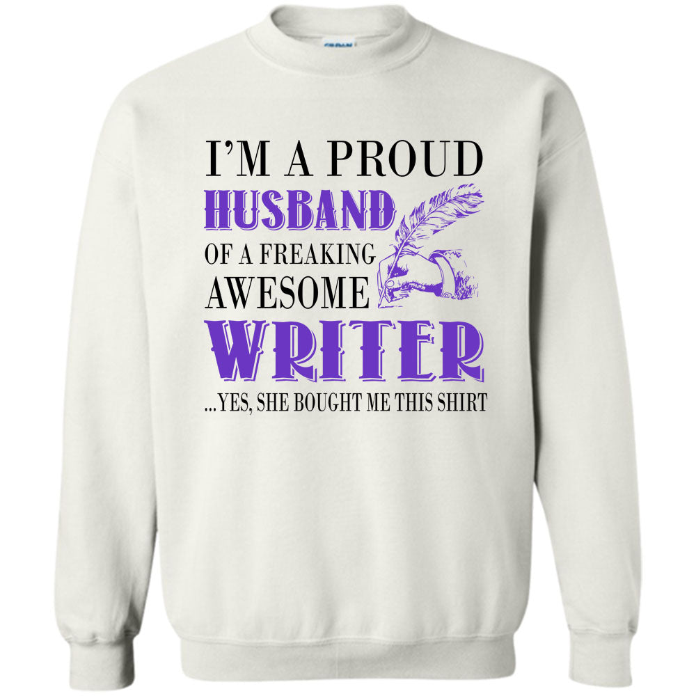 I'm A Writer Husband T Shirt, I'm A Proud Husband Of A Freaking Awesome Writer Sweatshirt