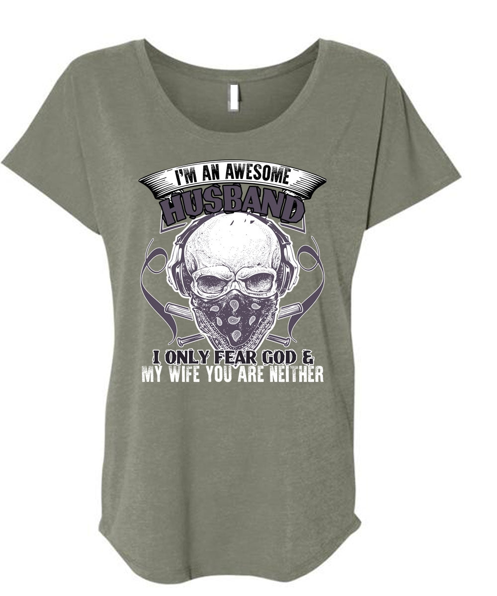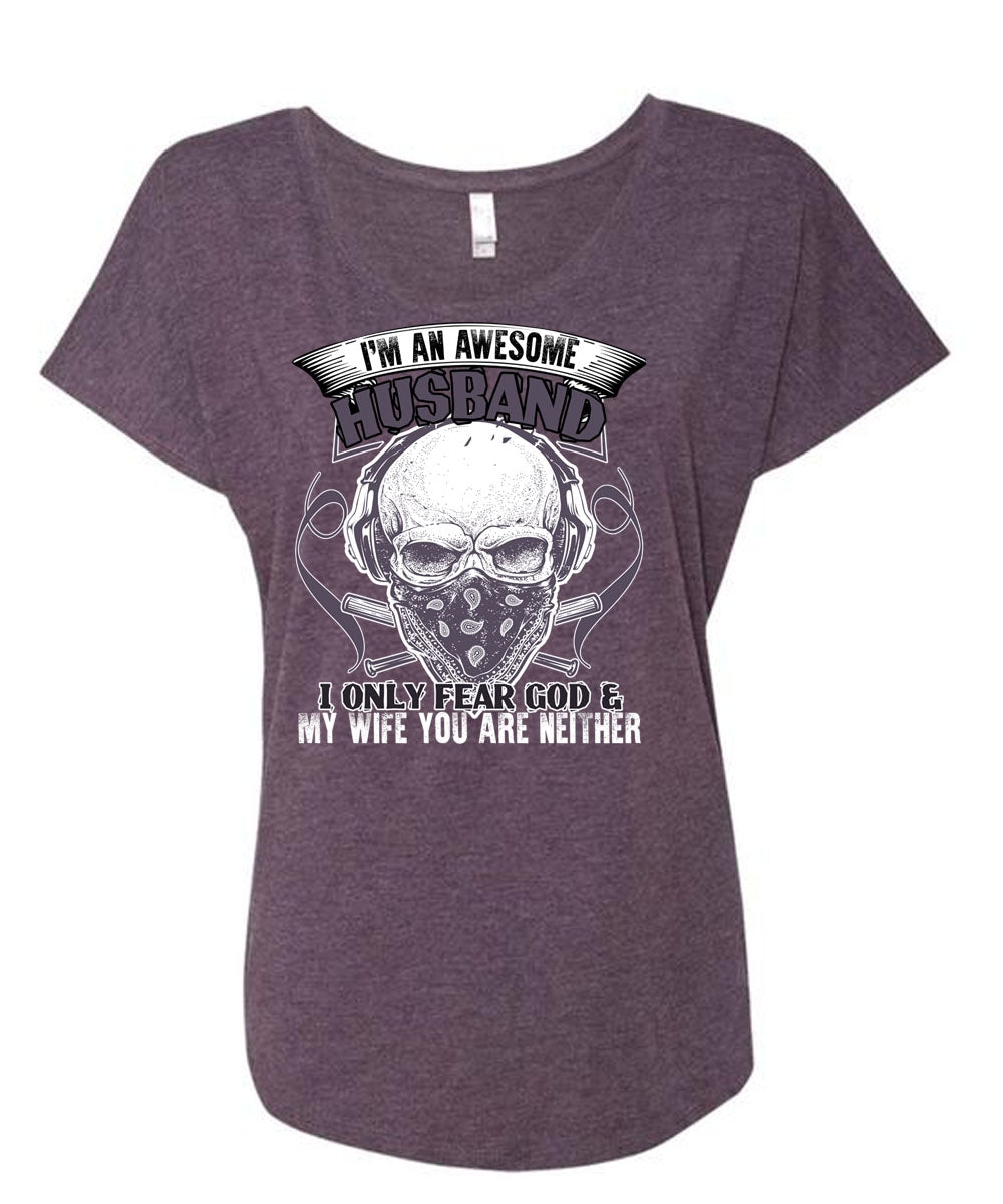 I'm An Awesome Husband T Shirt, Fear God And My Wife T Shirt, Cool Shirt (Ladies' Triblend Dolman Sleeve)