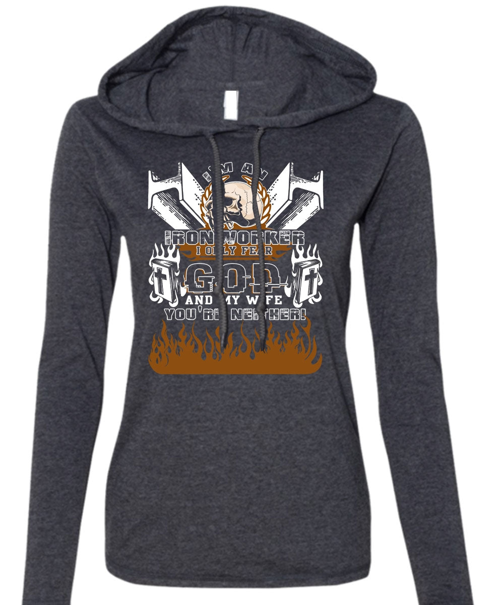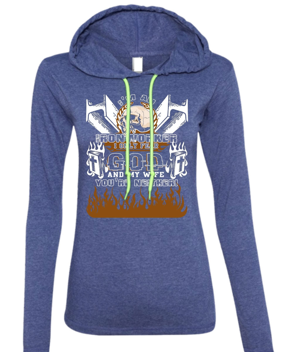 I'm An Ironworker T Shirt, God And My Wife T Shirt (Anvil Ladies Ringspun Hooded)
