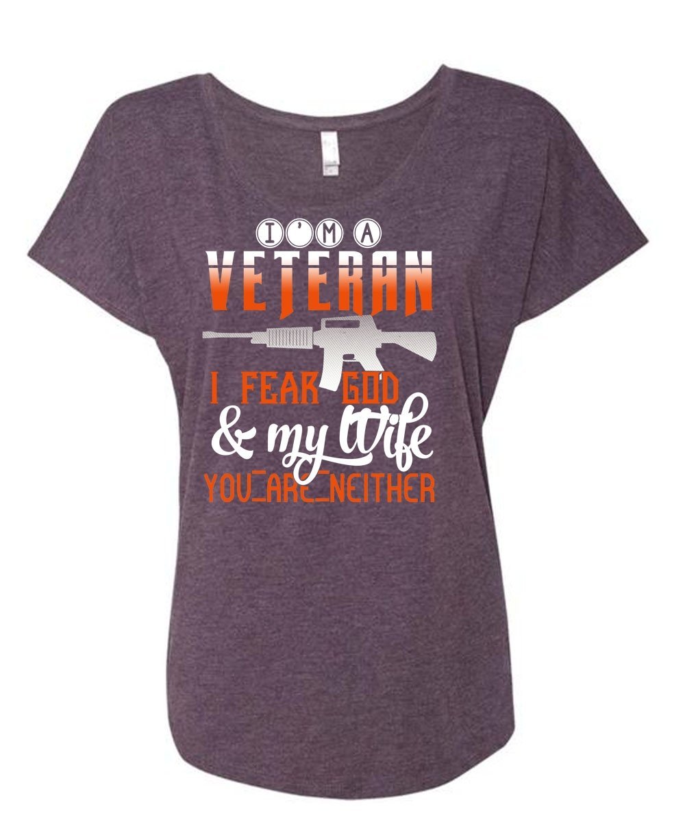 I'm An Veteran I Fear God And My Wife You Are Neither T Shirt, Love T Shirt (Ladies' Triblend Dolman Sleeve)