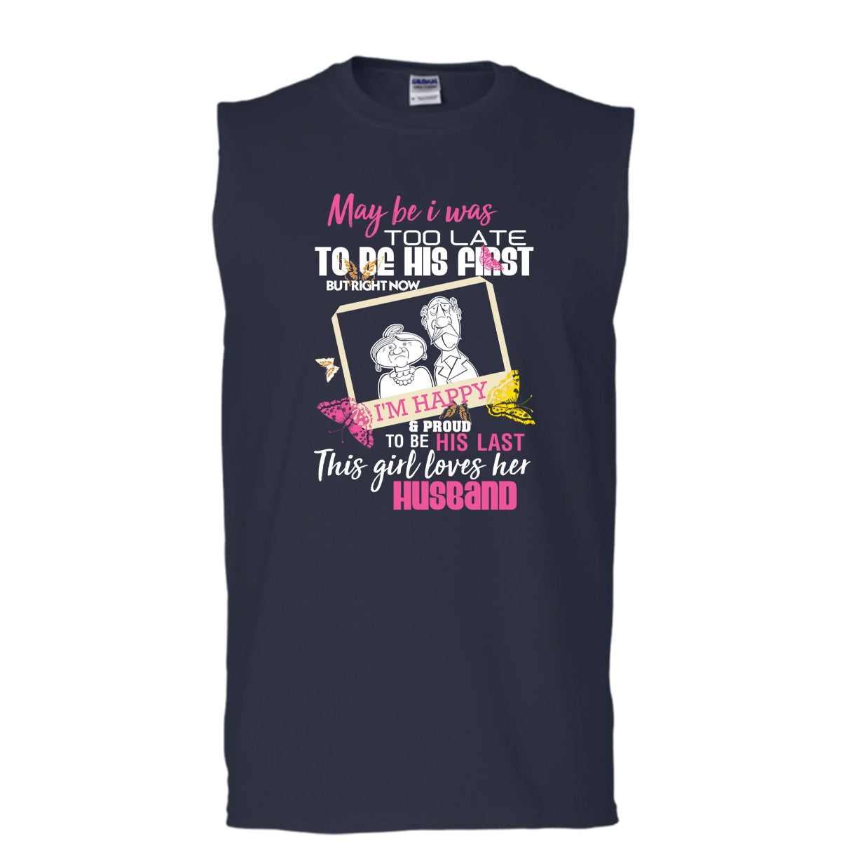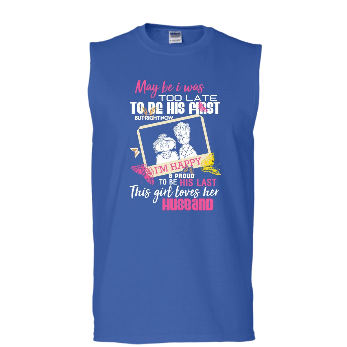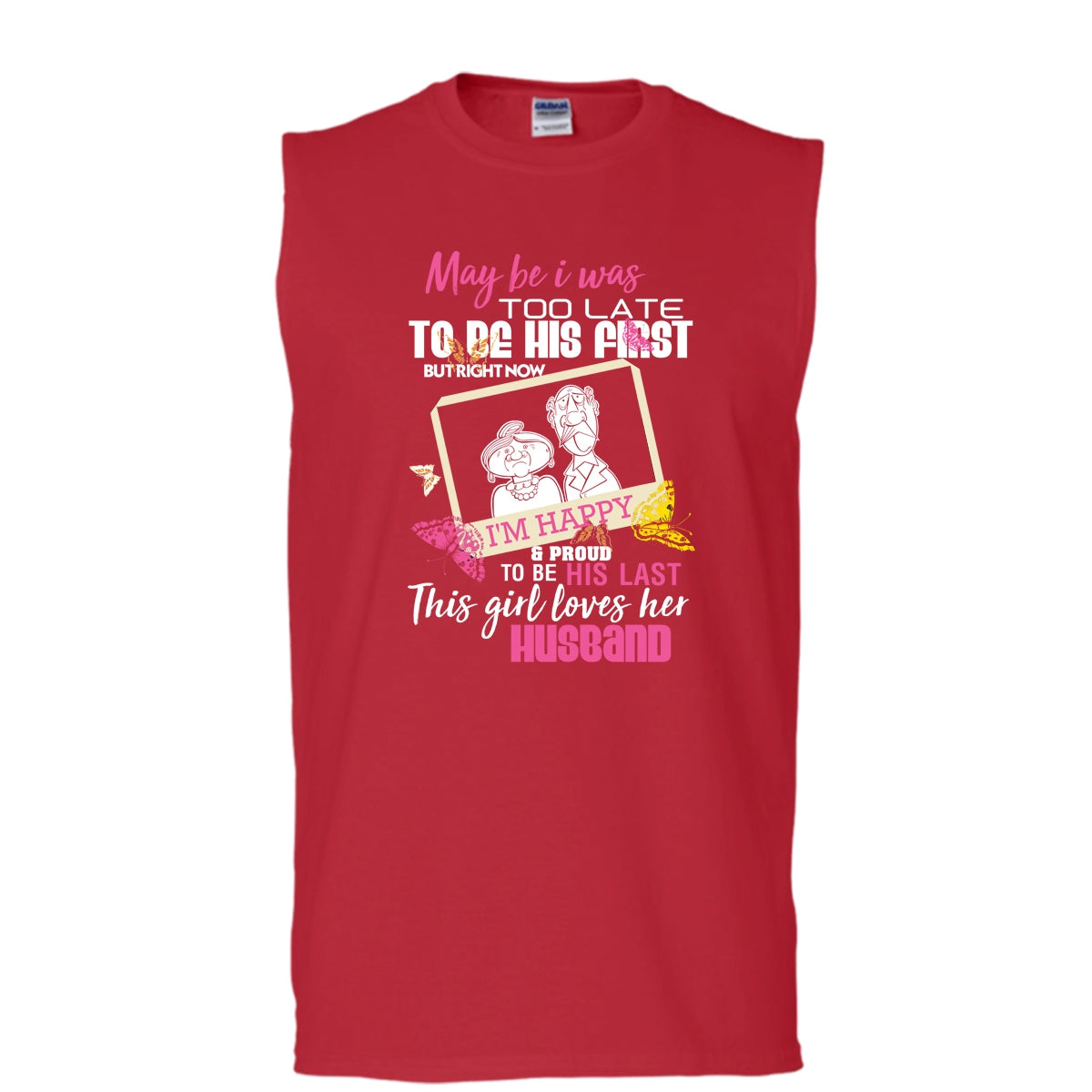 I'm Happy & Proud To Be His Last T Shirt, This Girl Loves Her Husband T Shirt, Cool T Shirt (Men's Cotton Sleeveless)
