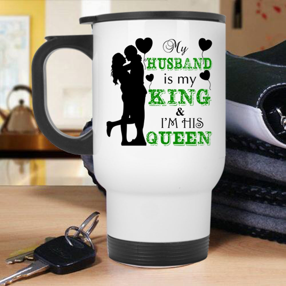 I'm His Queen Travel Mug, My Husband Is My King Mug