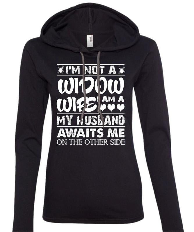 I'm Not A Widow Wife T Shirt, I Am A My Husband T Shirt (Anvil Ladies Ringspun Hooded)