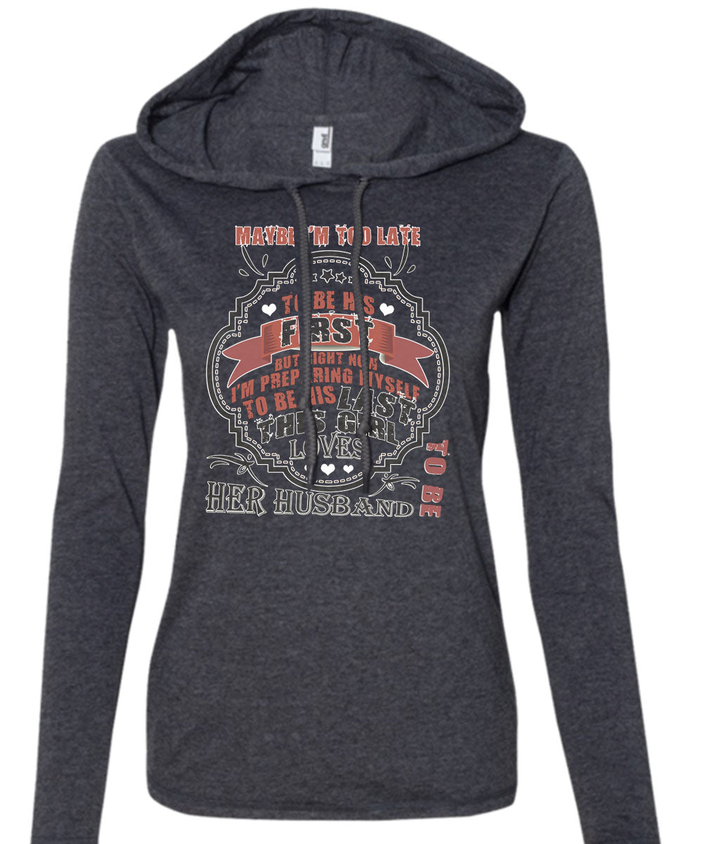 I'm Preparing Myself To Be His Last This Girl Loves Her Husband T Shirt, I'm Too Late To Be His First T Shirt (Anvil Ladies Ringspun Hooded)