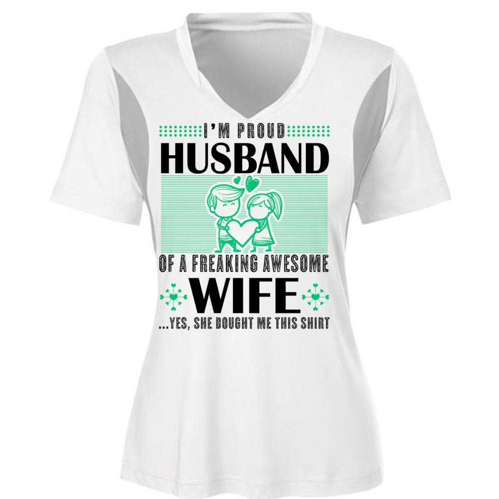 I'm Proud Husband T Shirt, Freaking Awesome Wife T Shirt, Cool Shirt (Ladies LS Heather V-Neck)