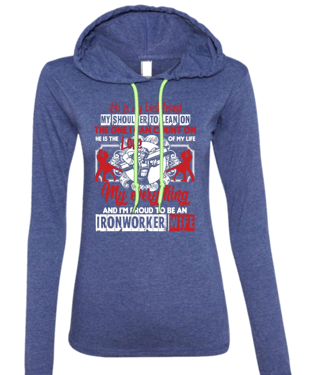 I'm Proud To Be An Ironworker Wife T Shirt, He Is My Best Friend T Shirt (Anvil Ladies Ringspun Hooded)