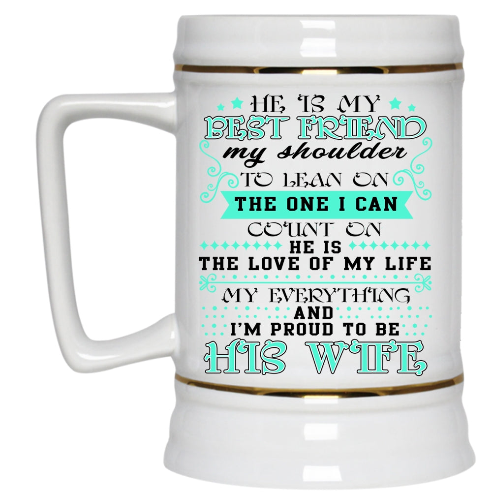 I'm Proud To Be His Wife Beer Stein 22oz, He Is My Best Friend Beer Mug