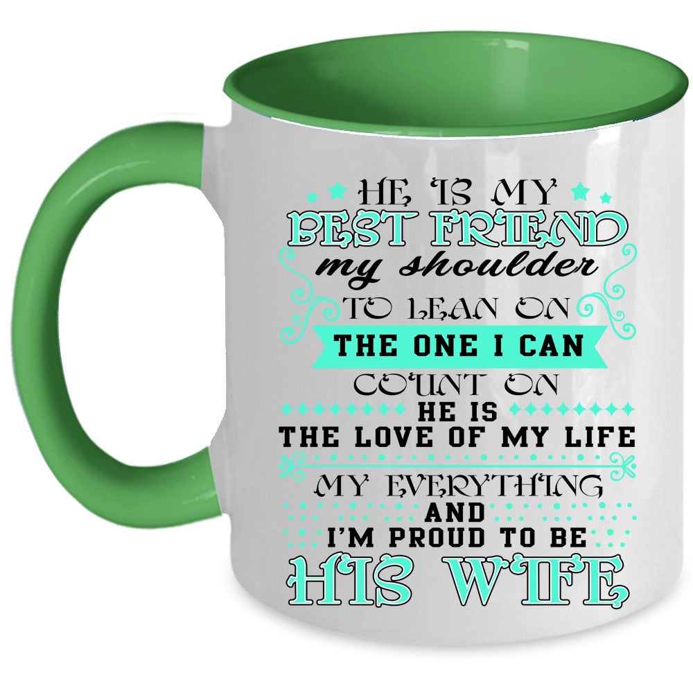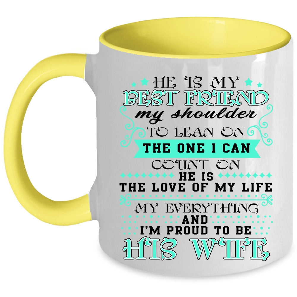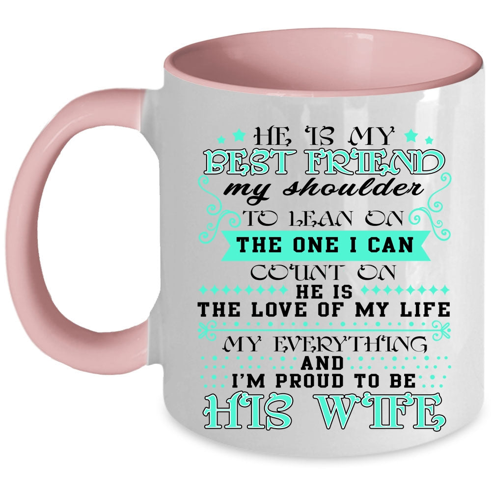 I'm Proud To Be His Wife Coffee Mug, He Is My Best Friend Accent Mug