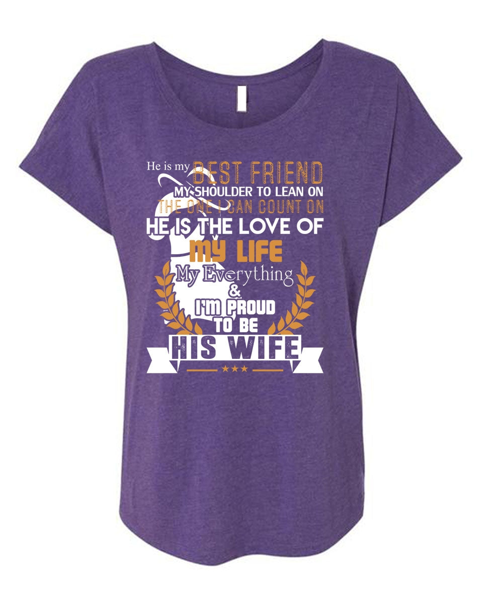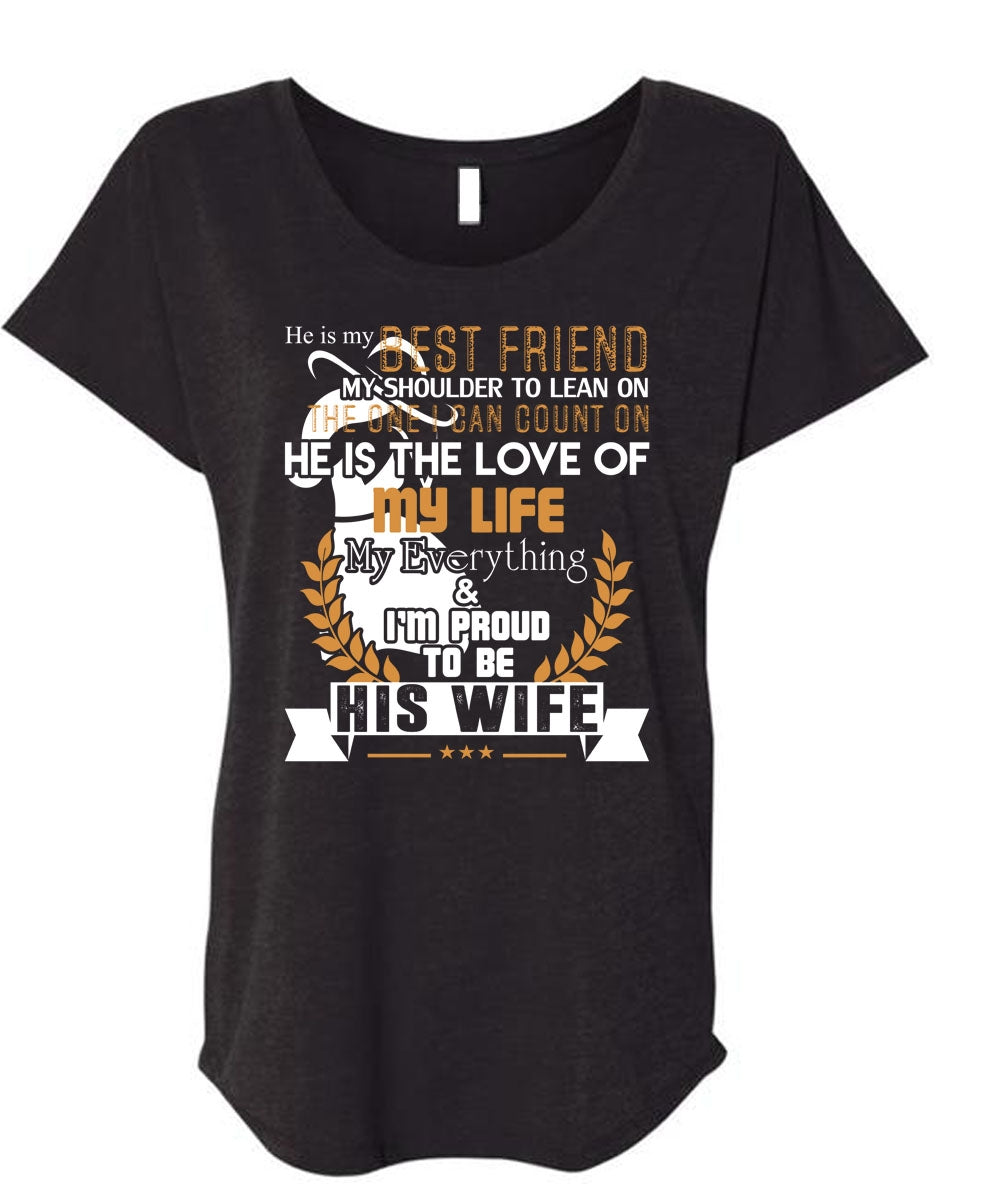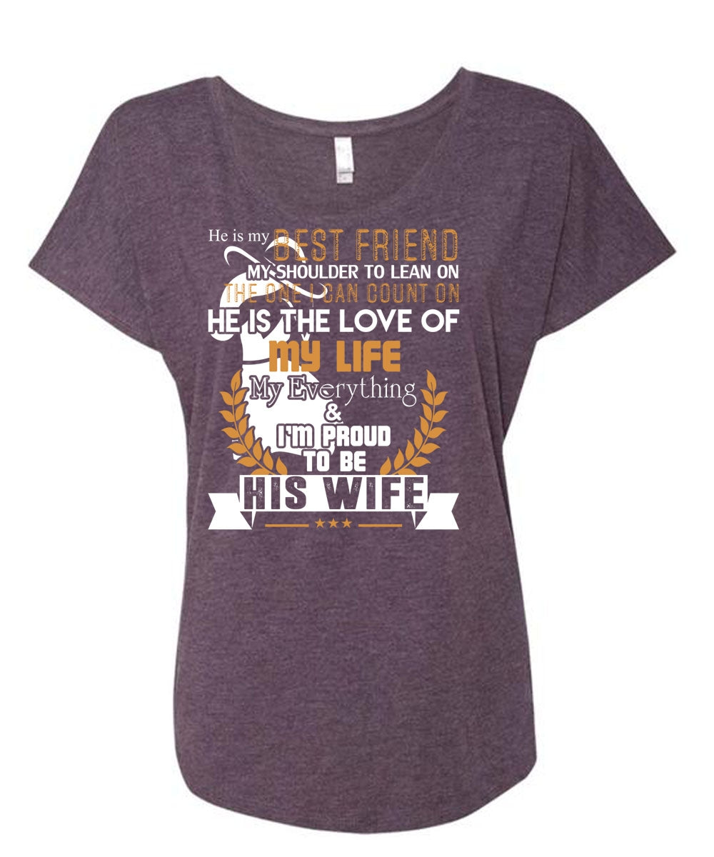 I'm Proud To Be His Wife T Shirt, He Is My Best Friend T Shirt, Cool Shirt (Ladies' Triblend Dolman Sleeve)