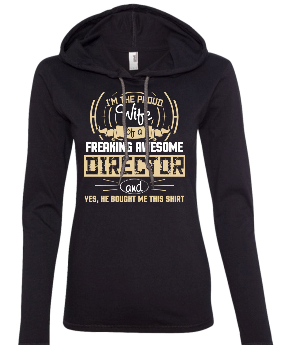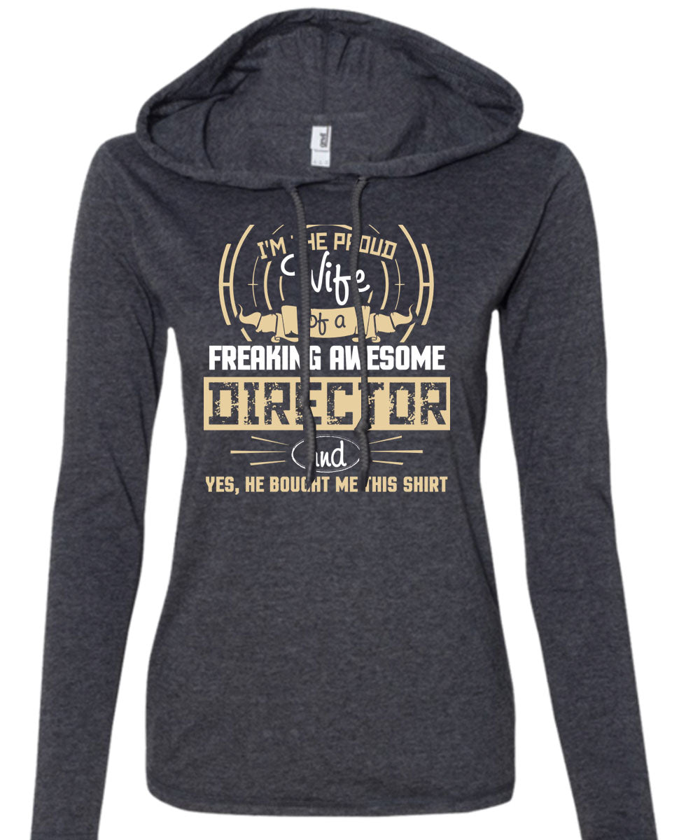 I'm The Proud Wife Of A Freaking Awesome Director T Shirt, I Love Director T Shirt (Anvil Ladies Ringspun Hooded)
