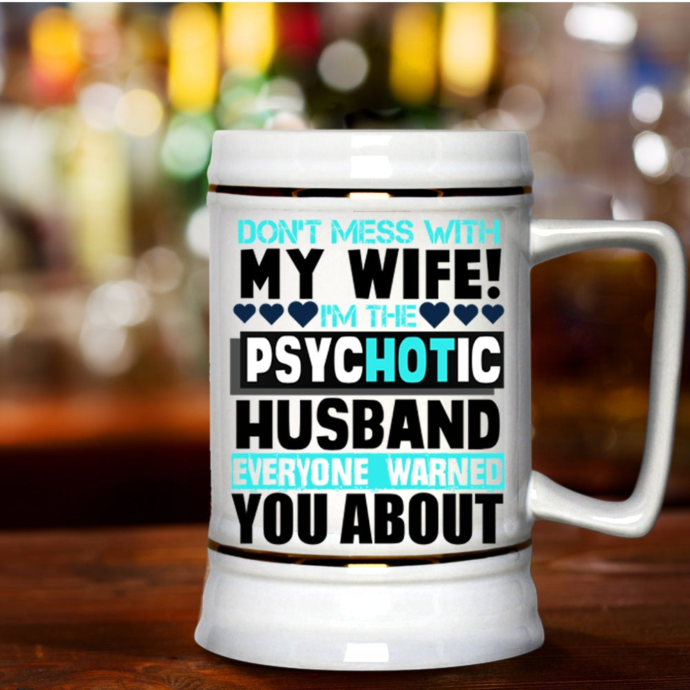 I'm The Psychotic Husband Beer Stein 22oz, Don’t Mess With My Wife Beer Mug