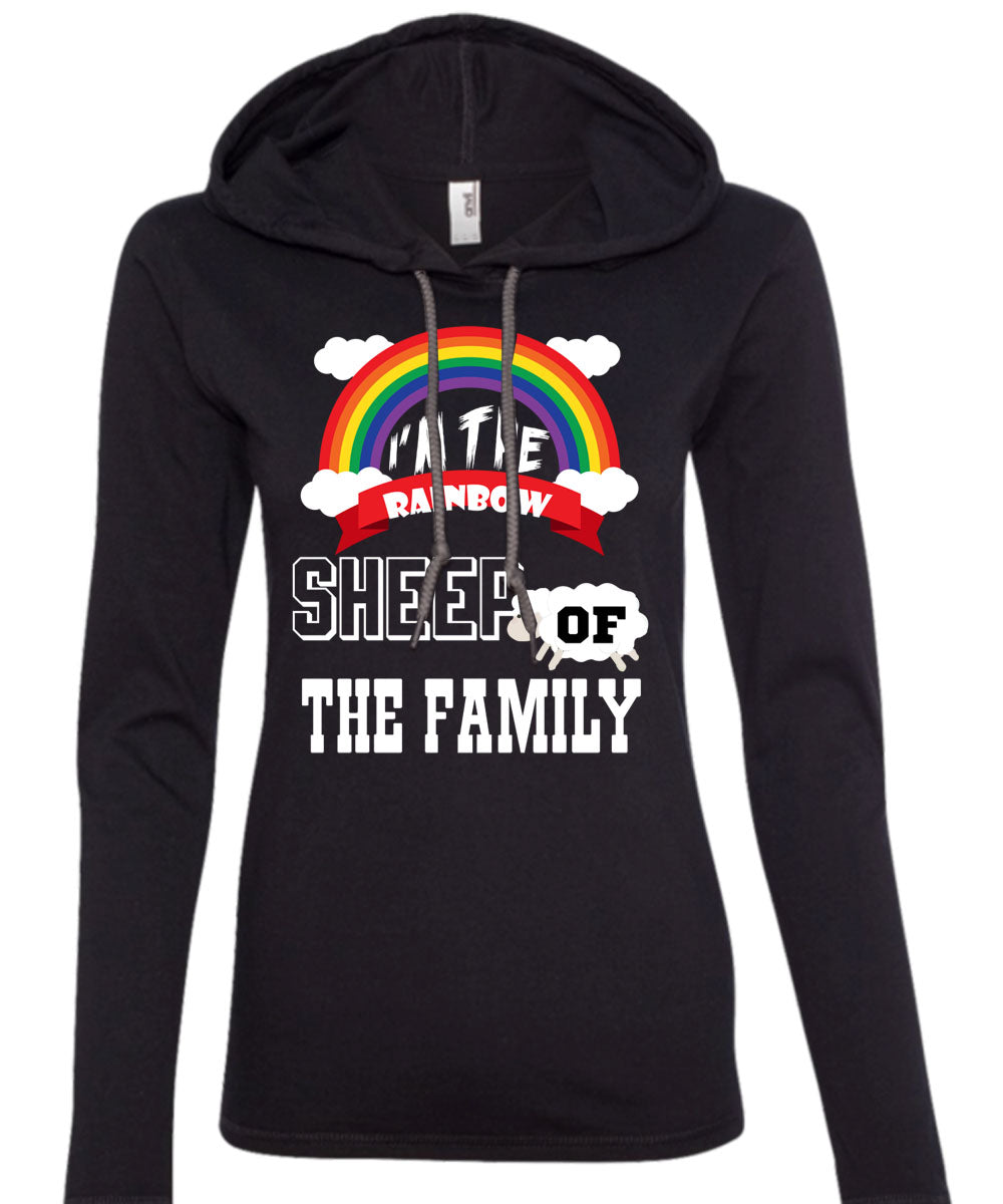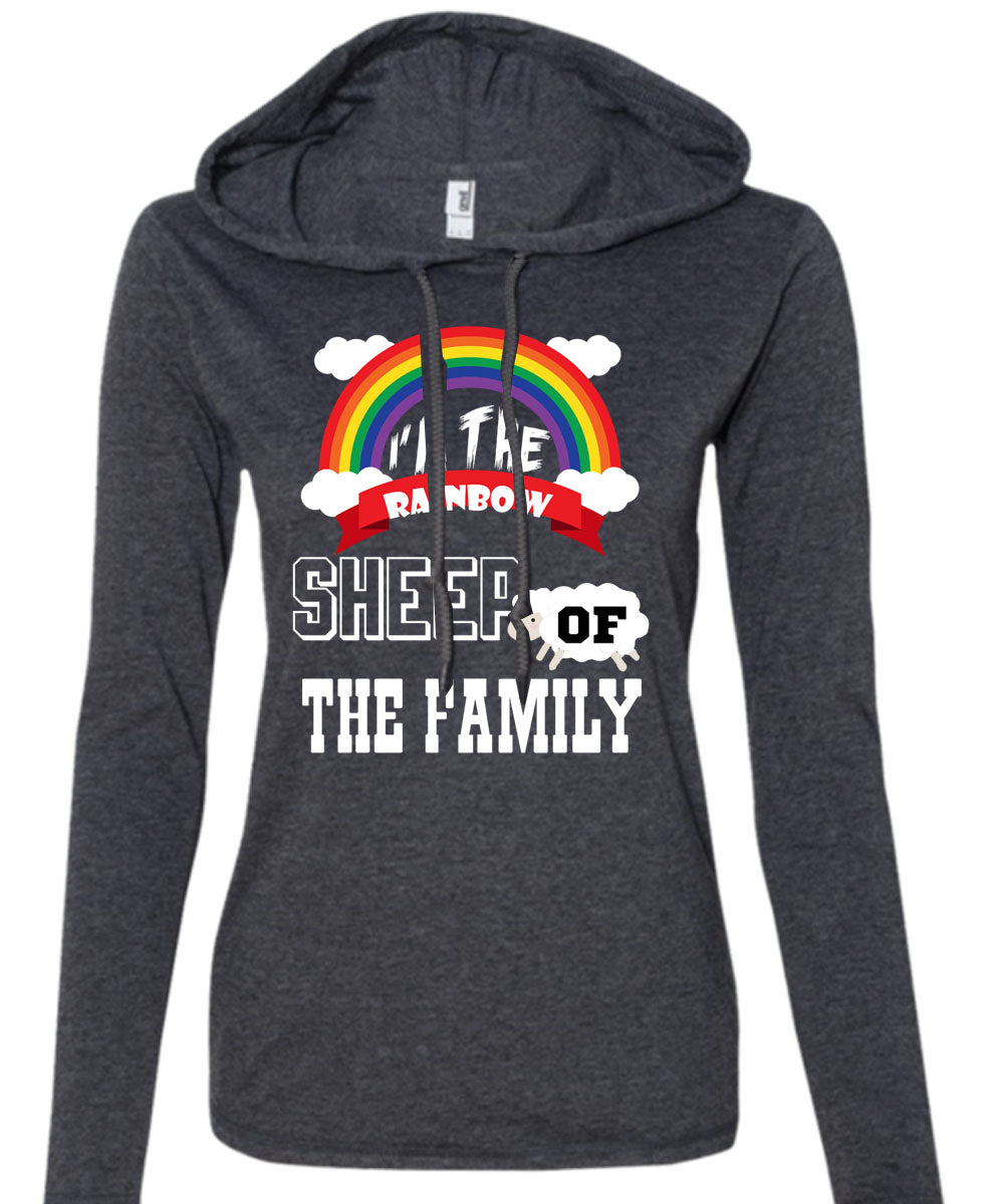 I'm The Rainbow Sheep Of The Family T Shirt, I Love Husband T Shirt (Anvil Ladies Ringspun Hooded)
