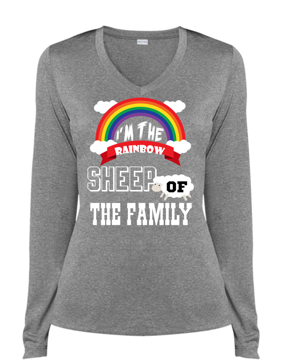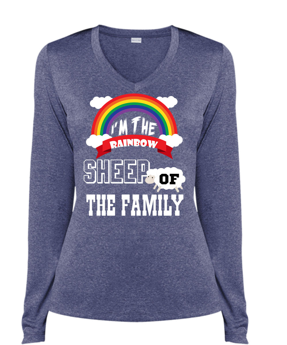 I'm The Rainbow Sheep Of The Family T Shirt, I Love Husband T Shirt, Cool Shirt (Ladies LS Heather V-Neck)